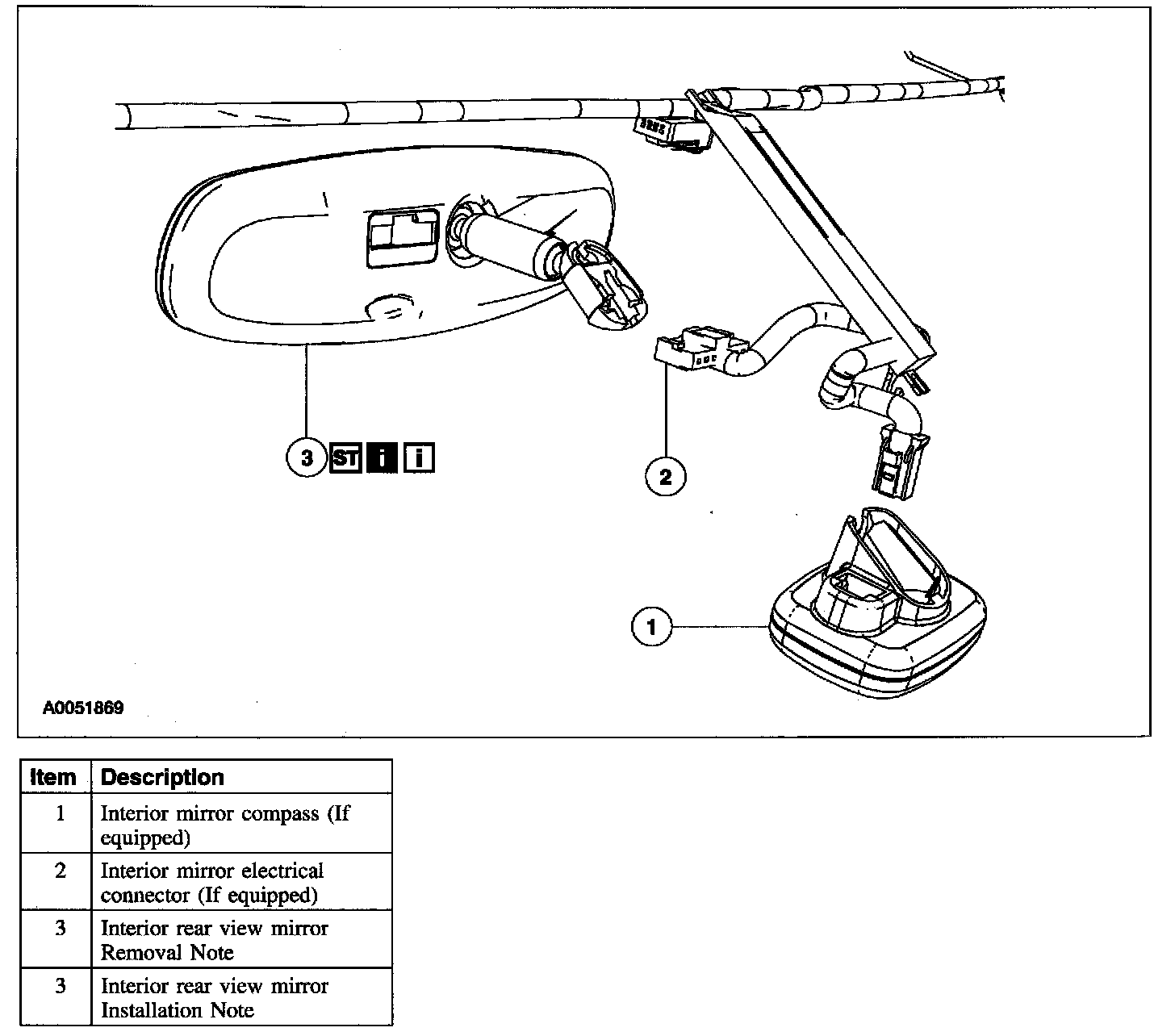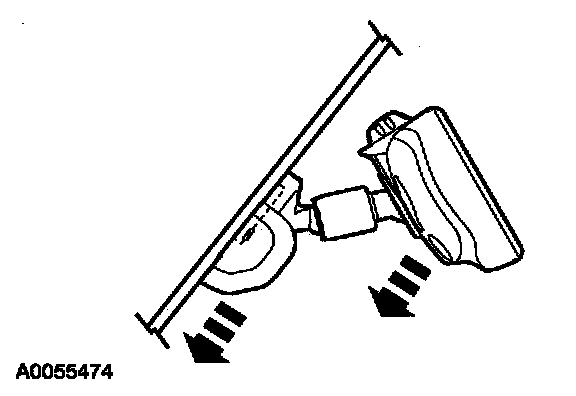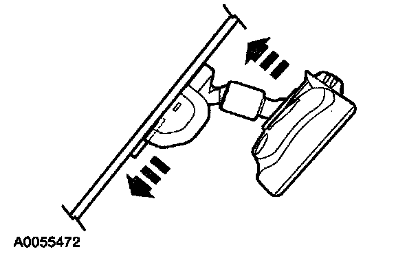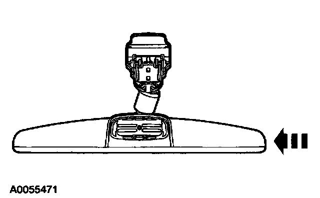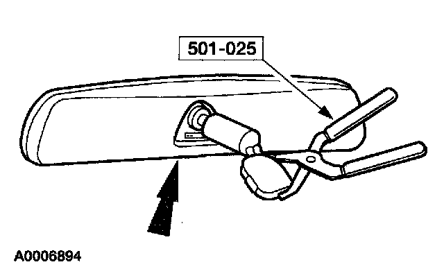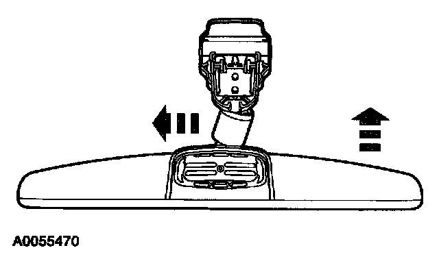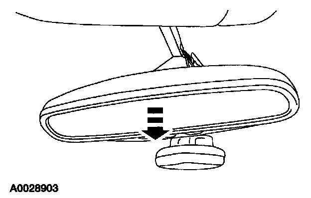 1. On Explorer, position the mirror in the full down position. Grasp the mirror and rotate in a downward and toward the windshield direction until released from the mirror windshield bracket.