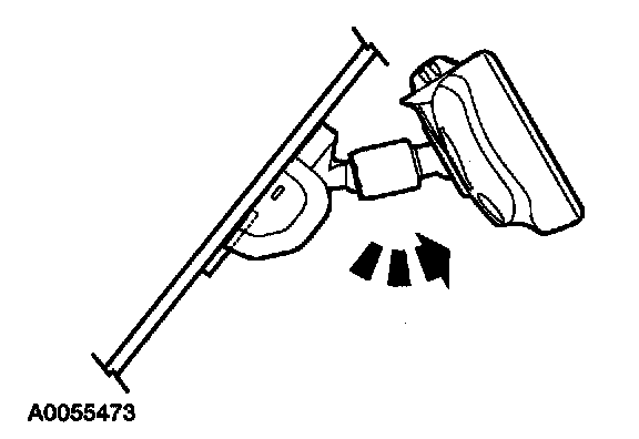 1. On Explorer, place the interior mirror on the windshield bracket. Using the special tool, press the mirror in place until fully seated.