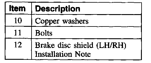 Item 12: Brake Disc Shield Installation Note