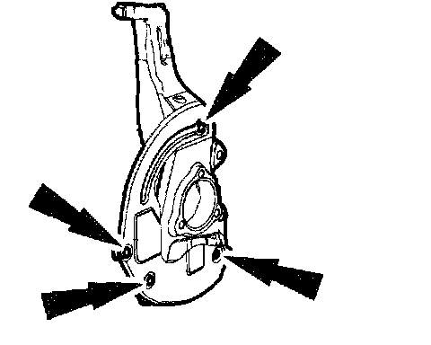 1. Drill four 6.35 mm (0.25 inch) holes in the wheel knuckle.
