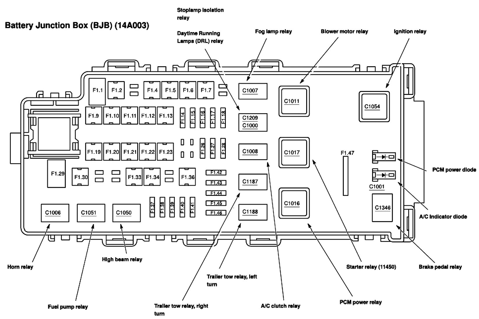 ALLDATA Editor's Note: Ford identifies this one component by 2 different names. Users have reported success comparing these images to determine Application/ID or Location of Fuses and Relays with the Battery Junction Box/Power Distribution Box.