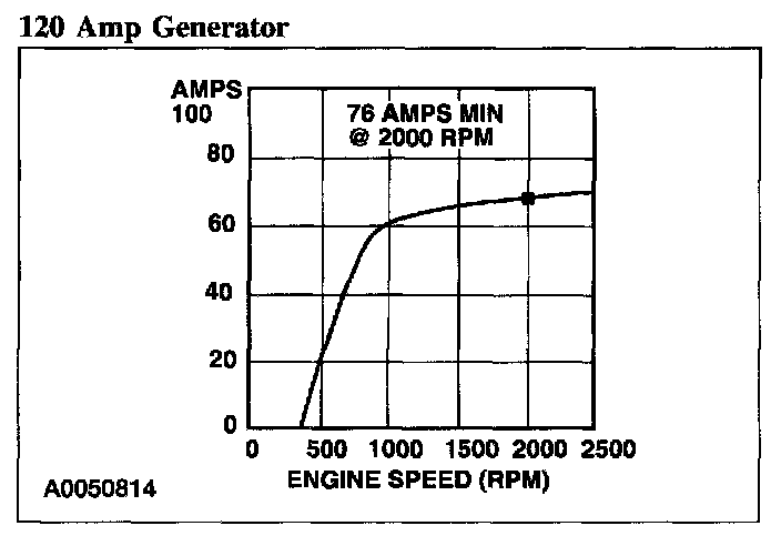 4. With the engine running at approximately 2,000 rpm, adjust the tester load bank to determine the output of the generator. Refer to the applicable chart for the correct minimum generator output.