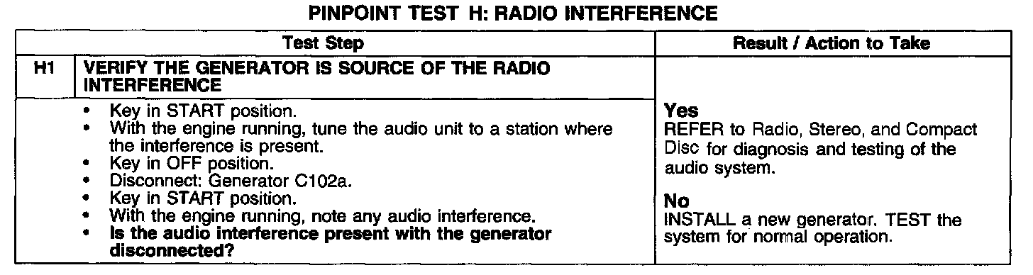 PINPOINT TEST H: RADIO INTERFERENCETest H1: