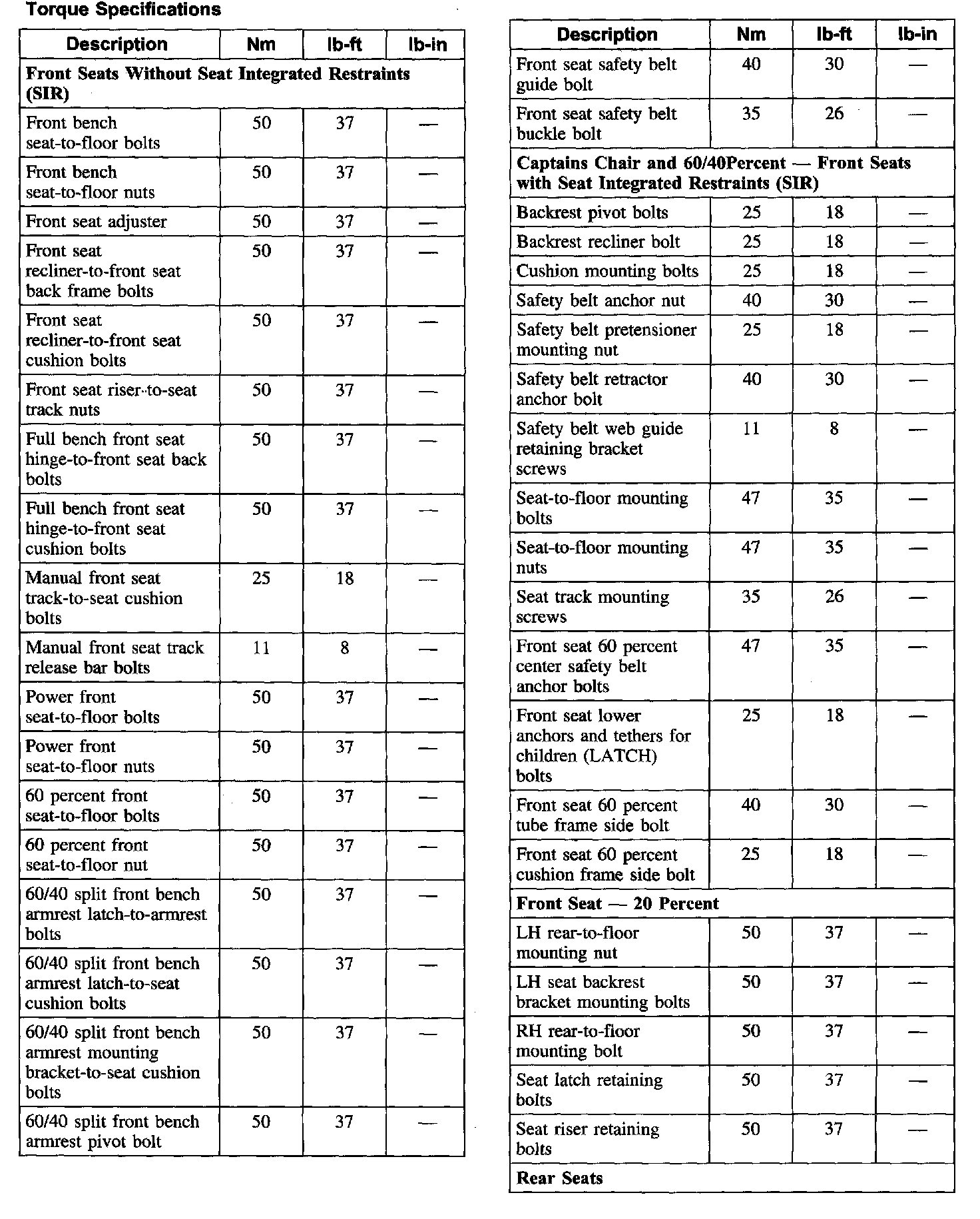 Seats: Specifications