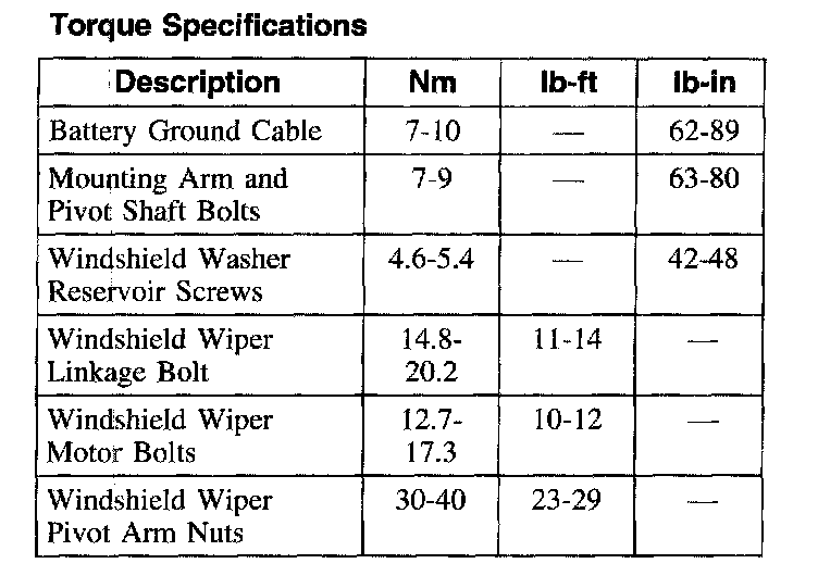 Torque Specifications: