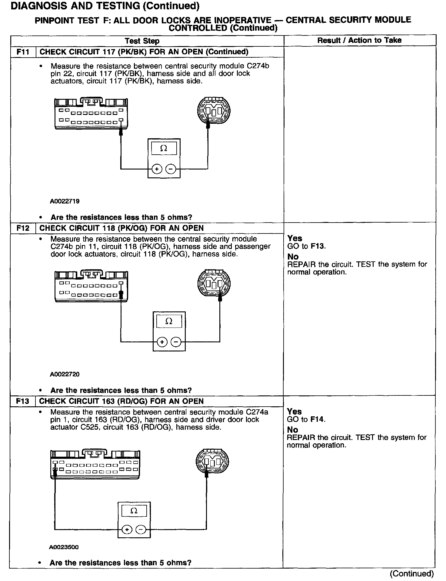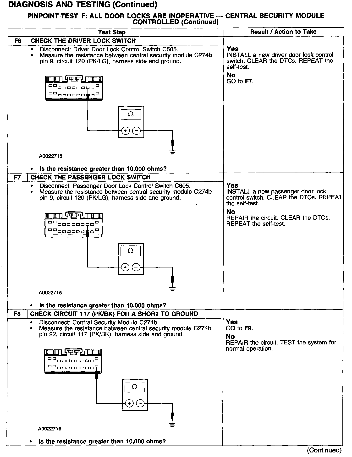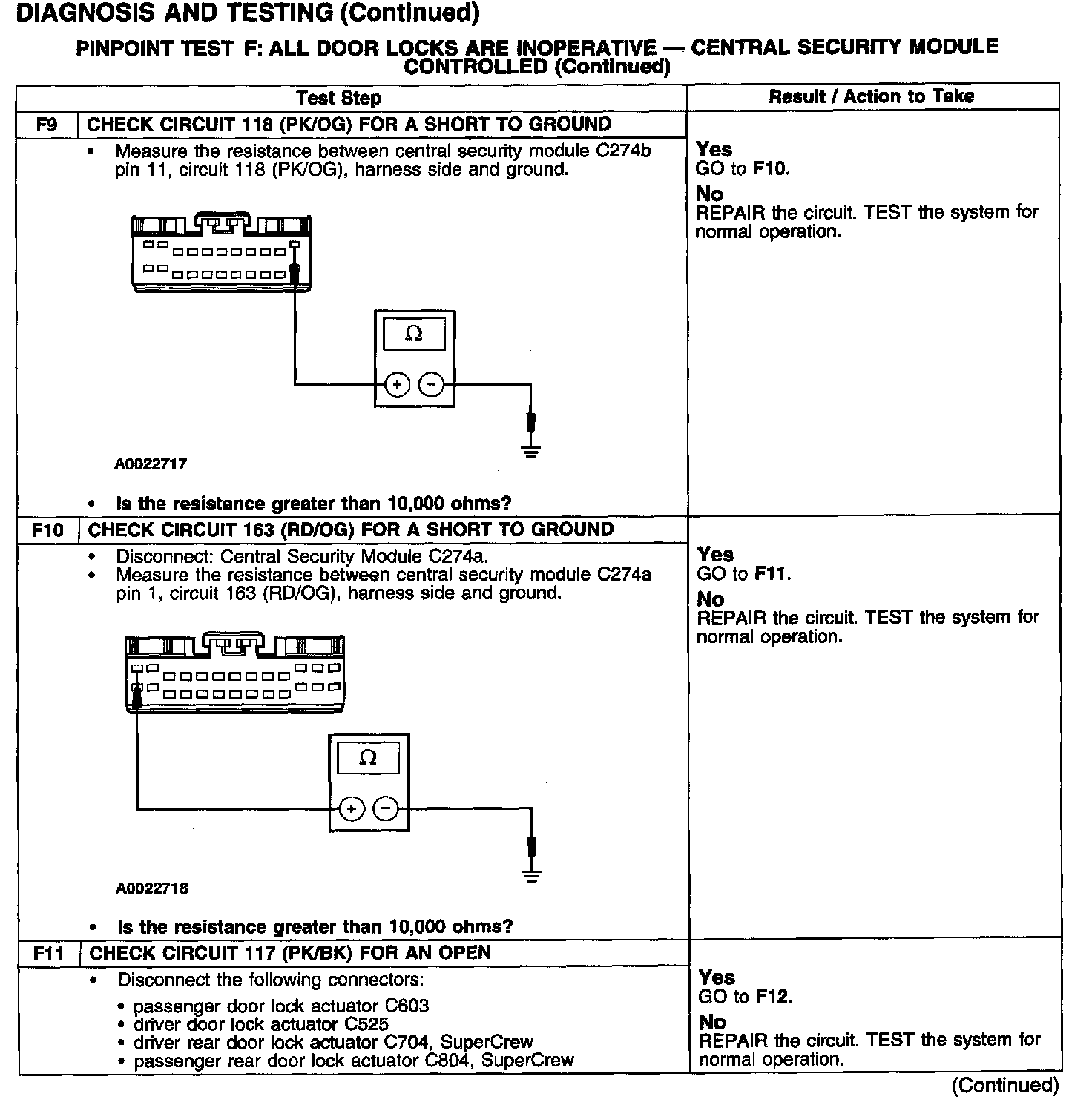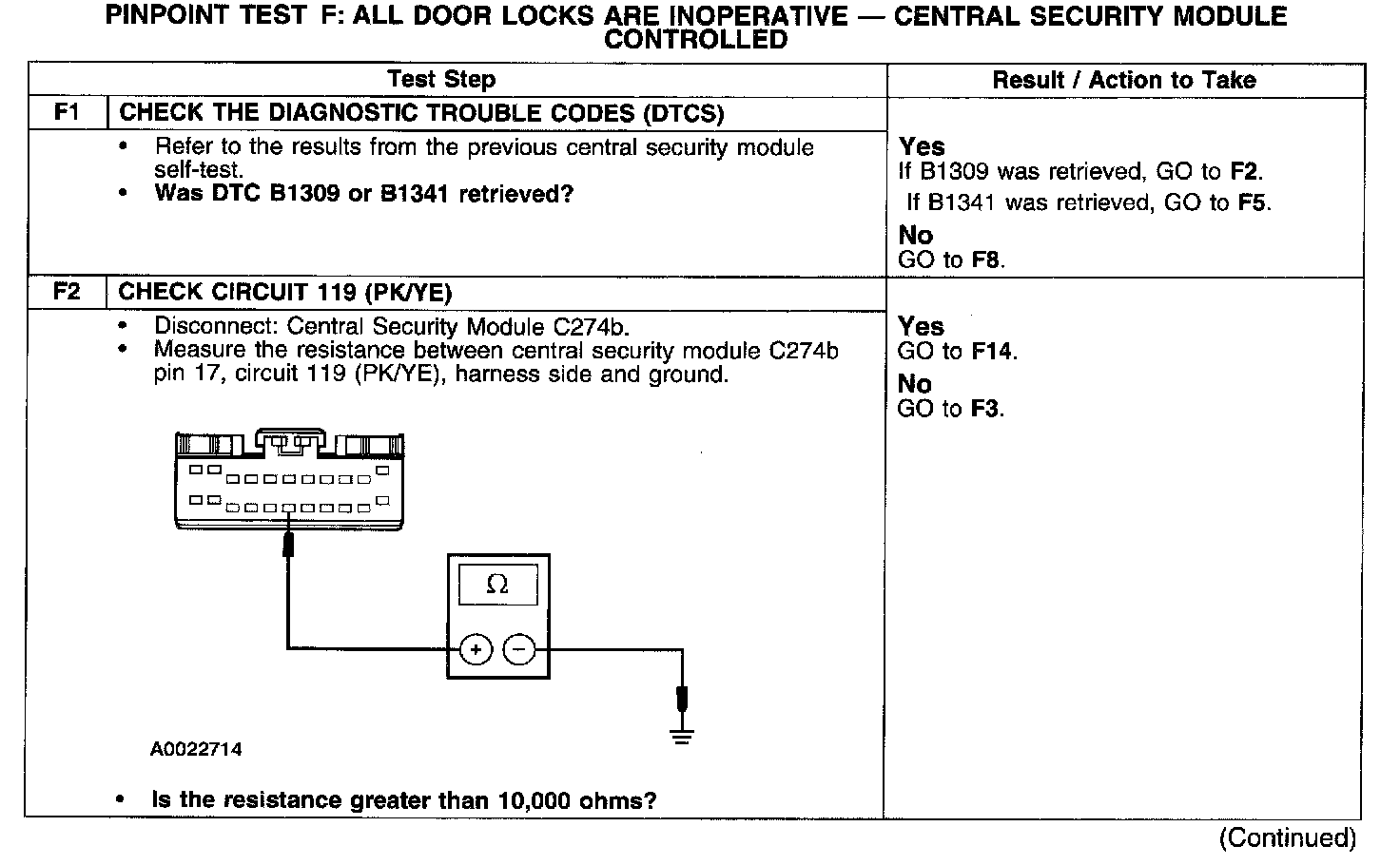 PINPOINT TEST F: ALL DOOR LOCKS ARE INOPERATIVE - CENTRAL SECURITY MODULE CONTROLLED