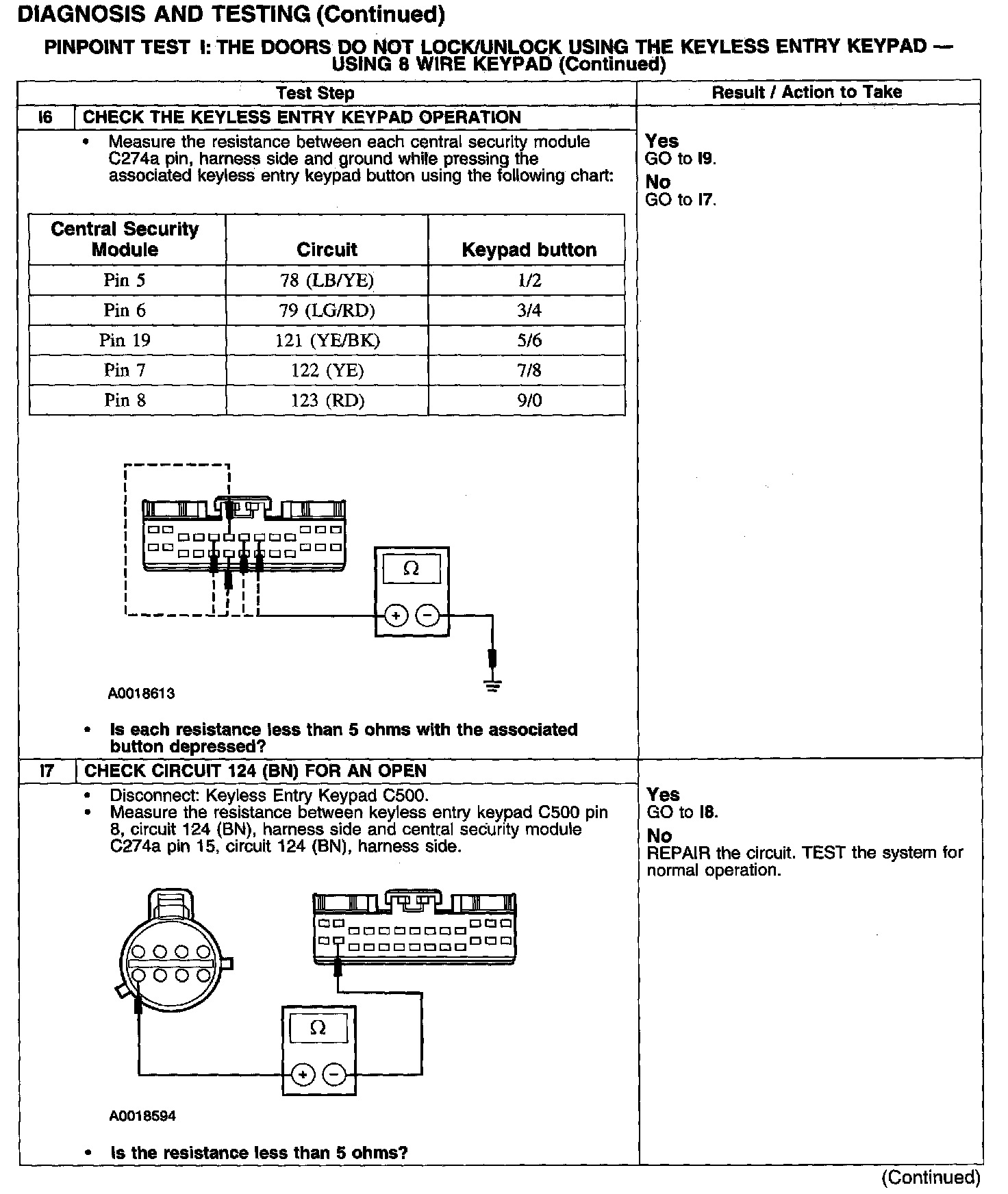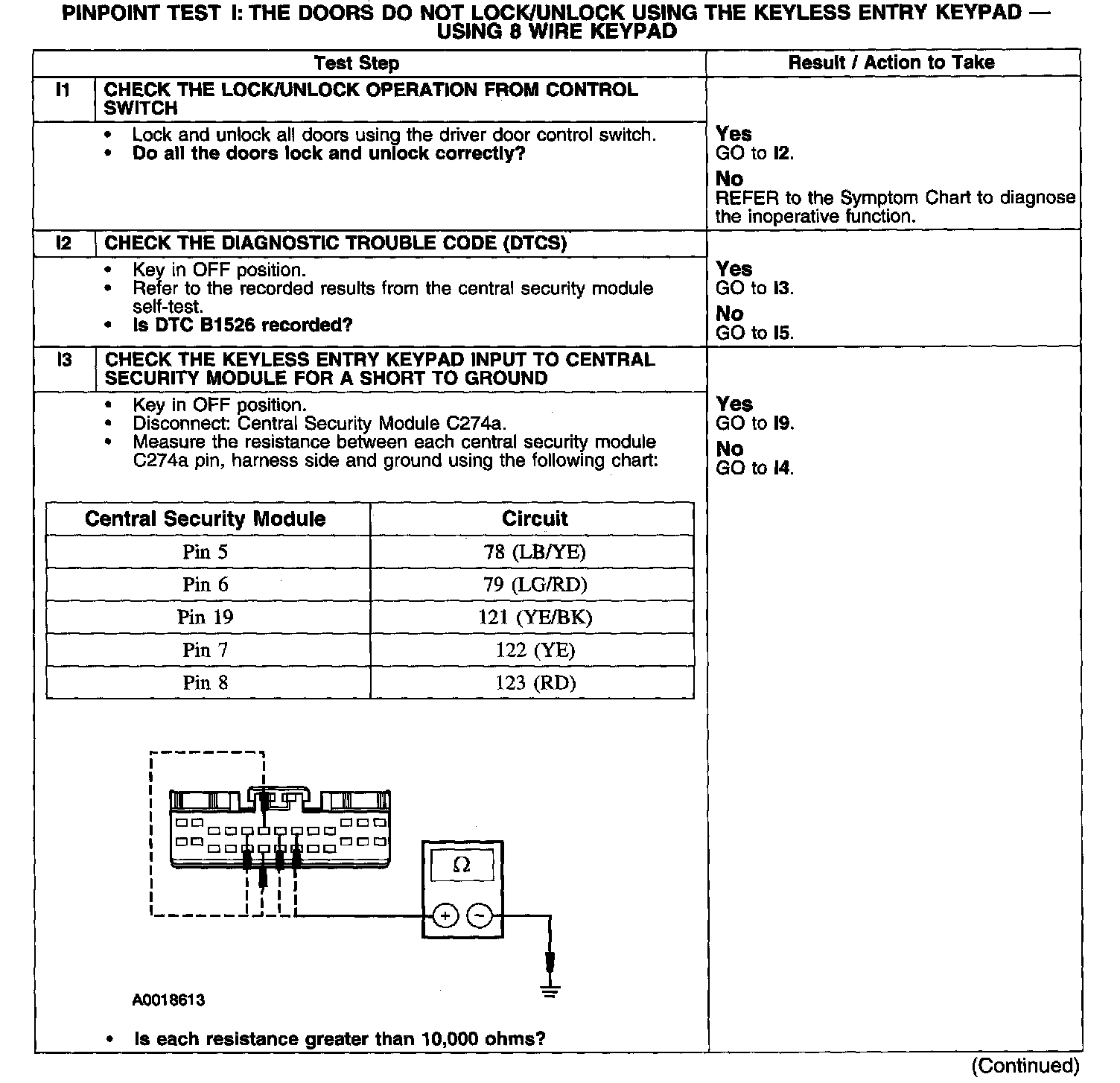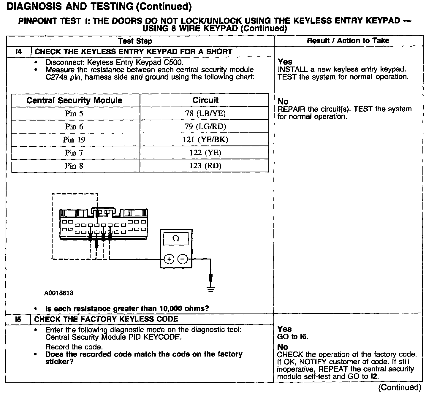 PINPOINT TEST I: THE DOORS DO NOT LOCK/UNLOCK USING THE