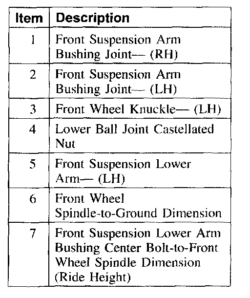5. NOTE: The ride height specification for vehicles with new suspension components is higher than the specification for vehicles using original suspension components to allow for new component setting.
