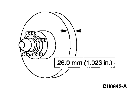 7. On 4x2 vehicles, measure the brake disc and hub for minimum thickness.
