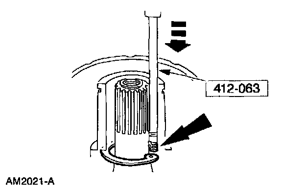 6. Pull the special tool up quickly while keeping the tool shaft against the side of the nose opening and remove the snap ring.