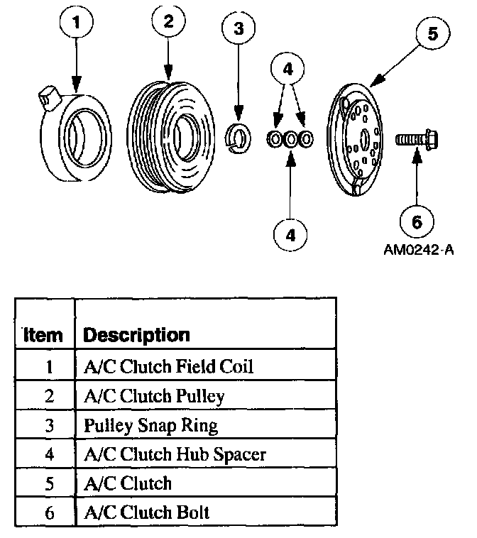 - When B+ is removed from the A/C compressor clutch field coil, springs in the clutch plate and hub assembly move the clutch plate away from the A/C clutch pulley.