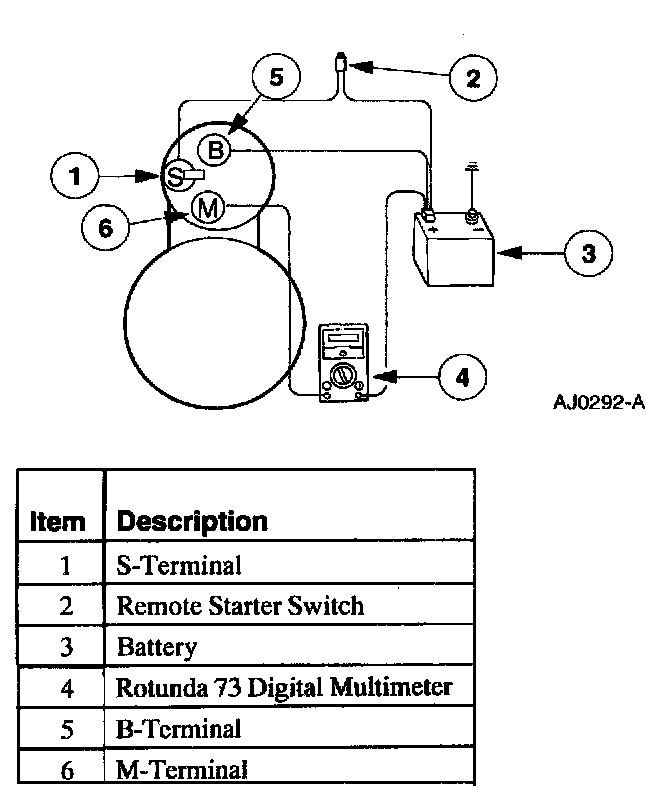 2. Connect a remote starter switch between the starter solenoid S-terminal and the battery positive (+) terminal.