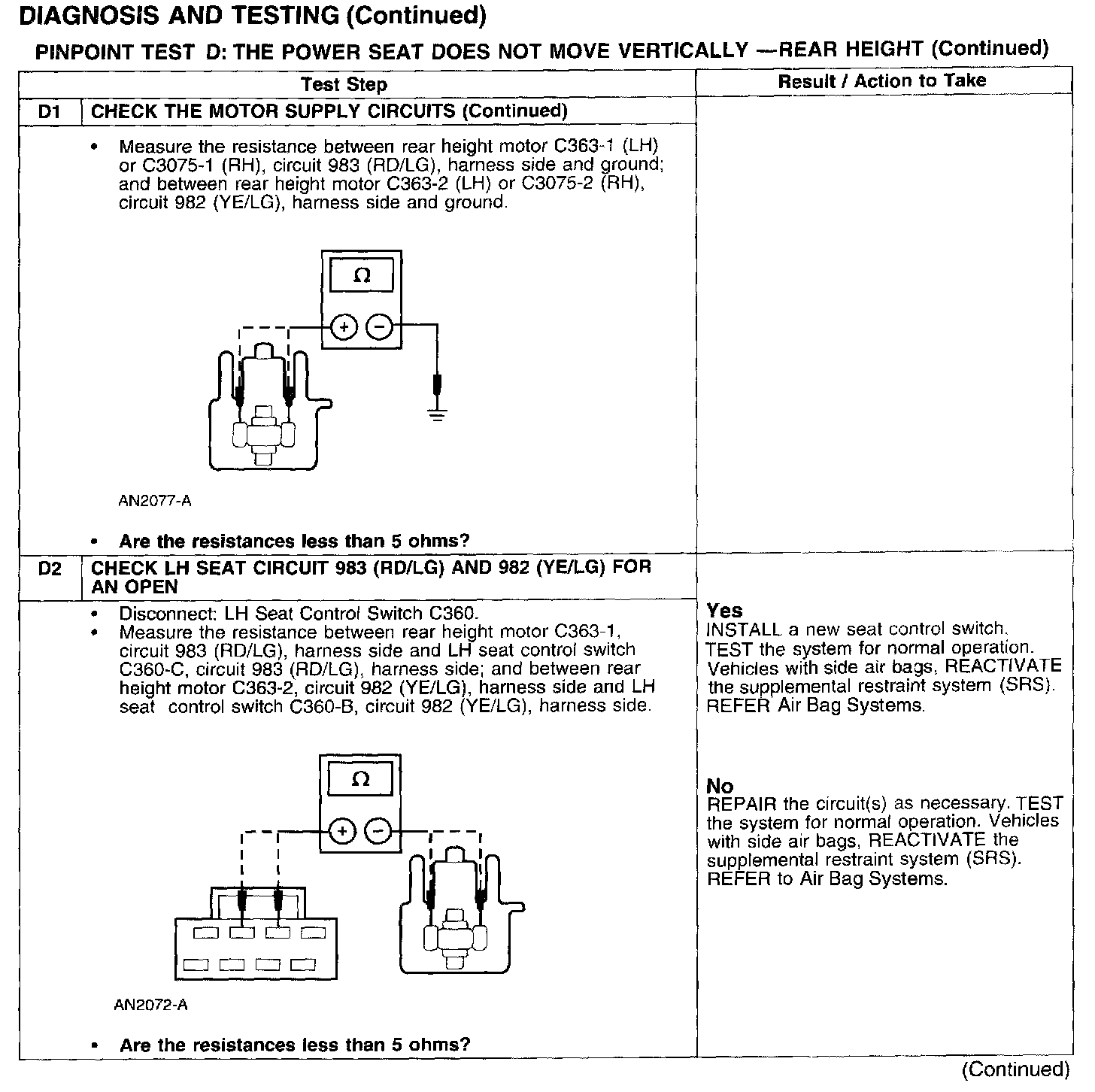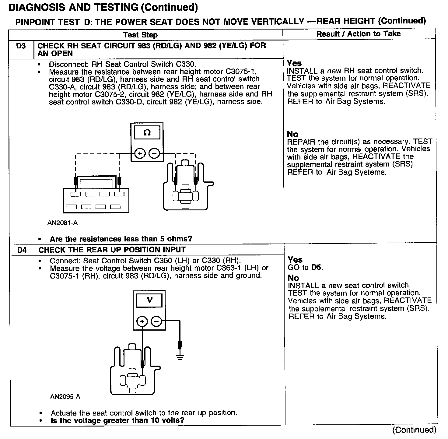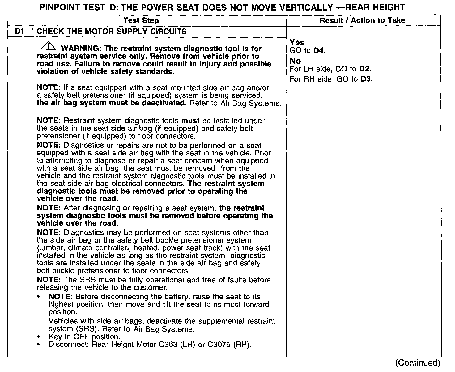 PINPOINT TEST D: THE POWER SEAT DOES NOT MOVE VERTICALLY - REAR HEIGHT
