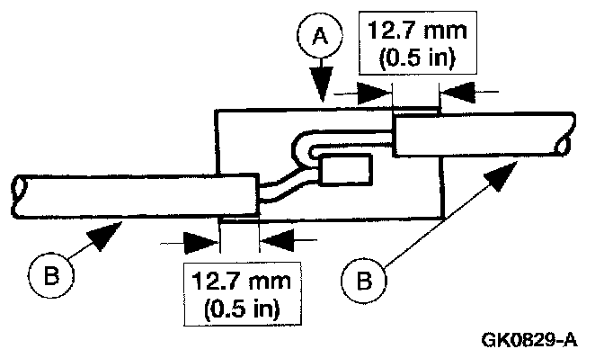 5. Position the (A) heat shrink tube over the (B) wire repair.