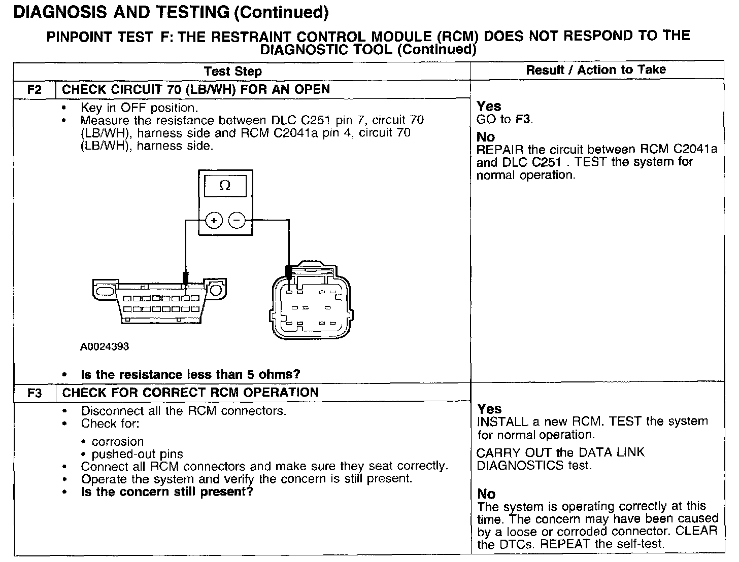 PINPOINT TEST F: THE RESTRAINT CONTROL MODULE (RCM) DOES NOT RESPOND TO THE DIAGNOSTIC TOOL