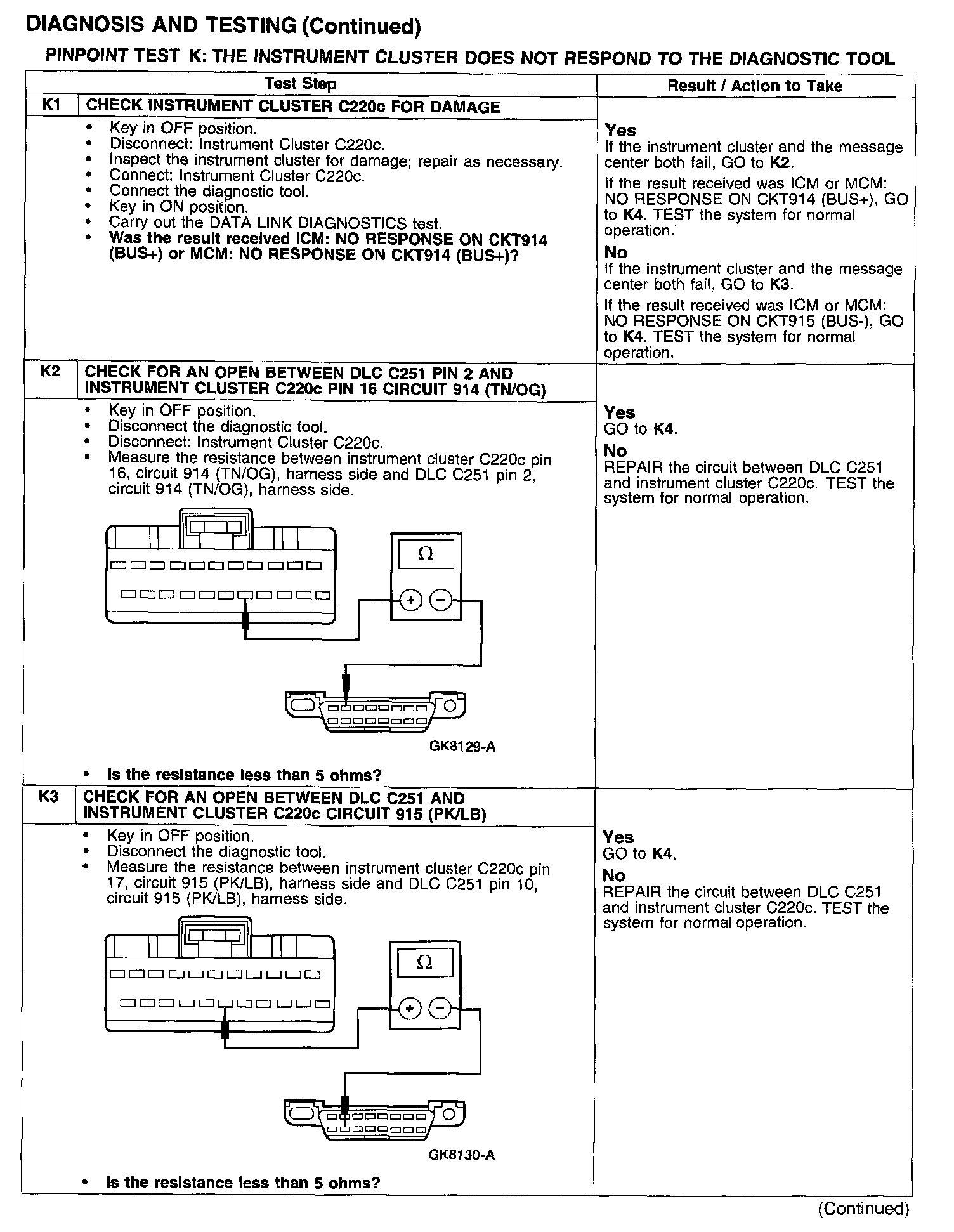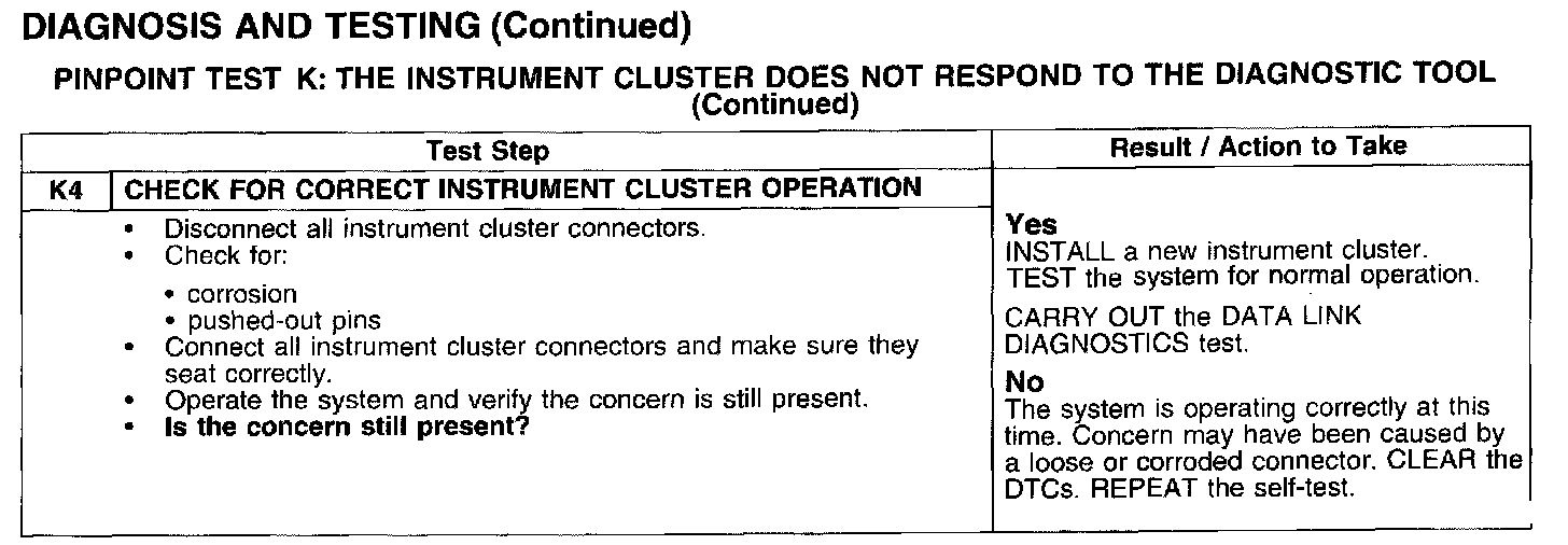 PINPOINT TEST K: THE INSTRUMENT CLUSTER DOES NOT RESPOND TO THE DIAGNOSTIC TOOL