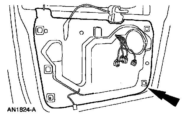 4. NOTE: Check the interior of the door to make sure the front window regulator wiring is not in line with the holes to be drilled into the door inner panel.