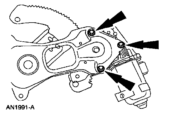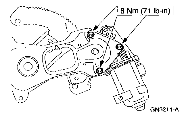 5. WARNING: The window regulator motor has a counterbalanced spring. The window must be in the up position to remove the motor or blocked to prevent the window from suddenly raising. Failure to follow these instructions may result in personal injury.