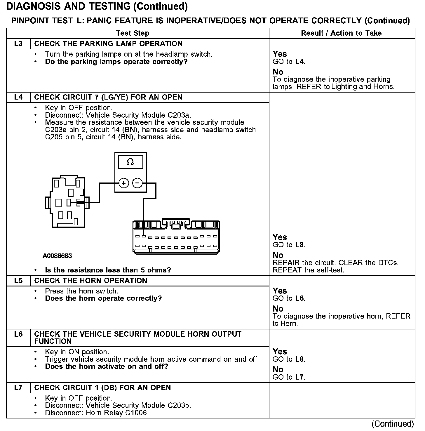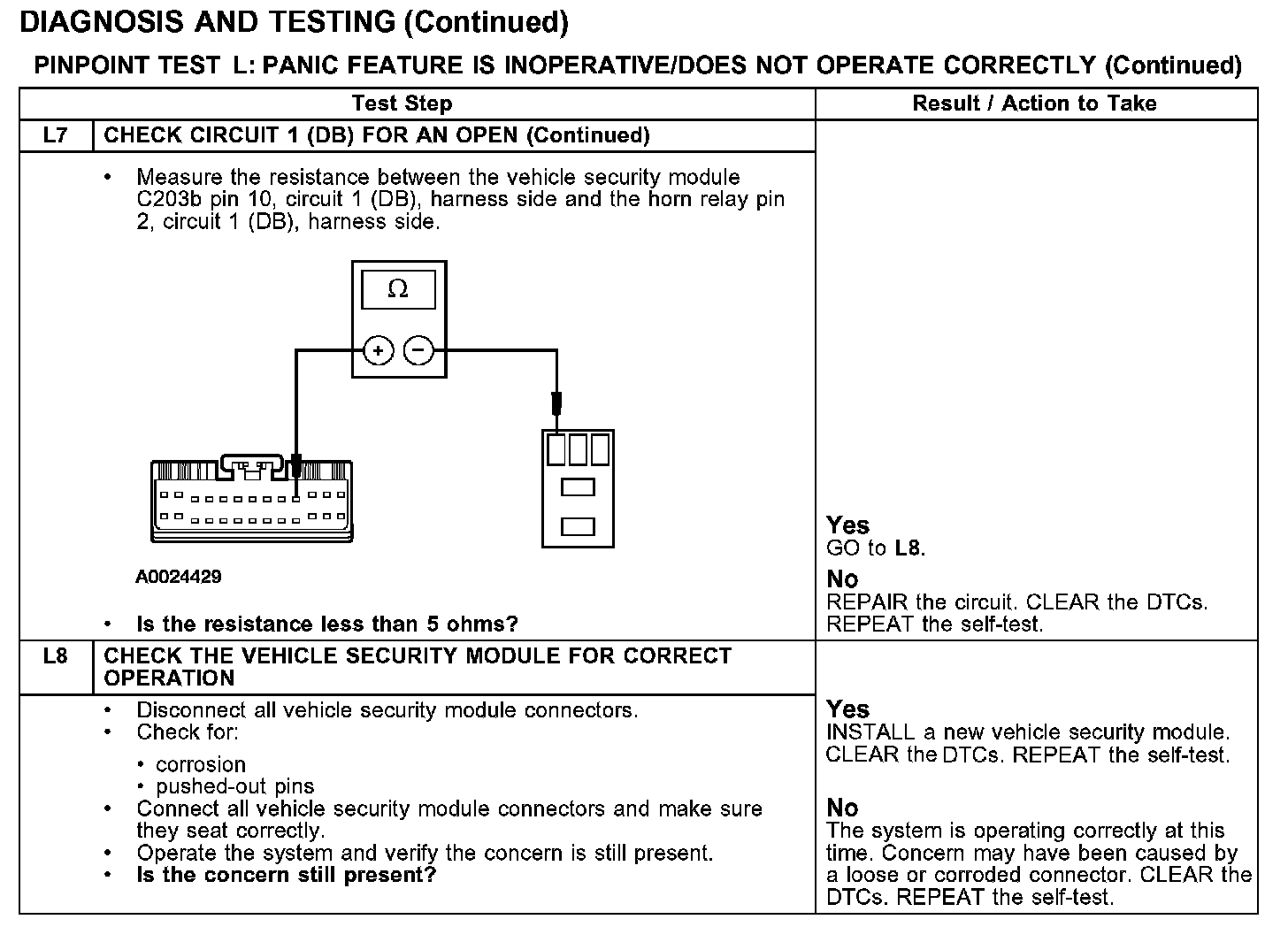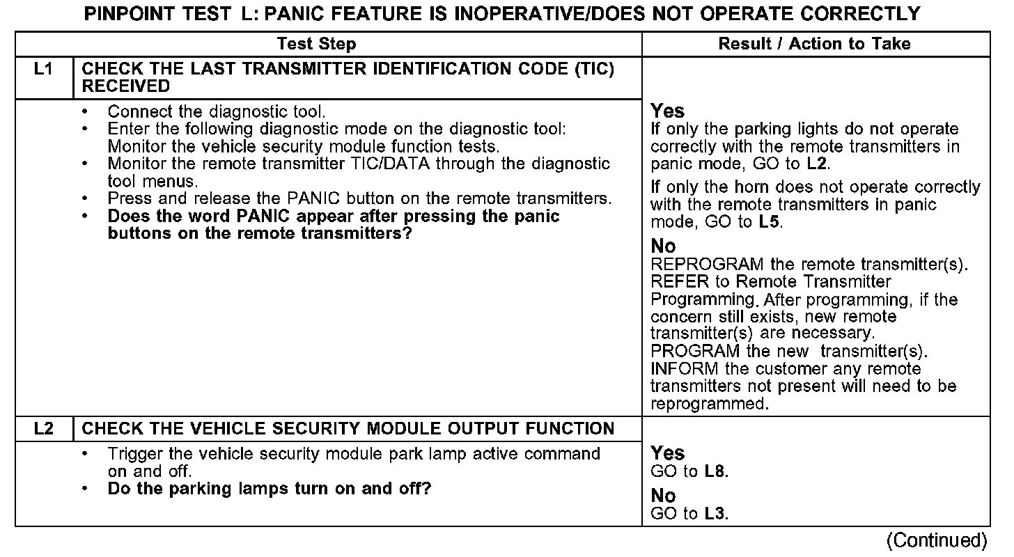 PINPOINT TEST L: PANIC FEATURE IS INOPERATIVE/DOES NOT OPERATE CORRECTLY