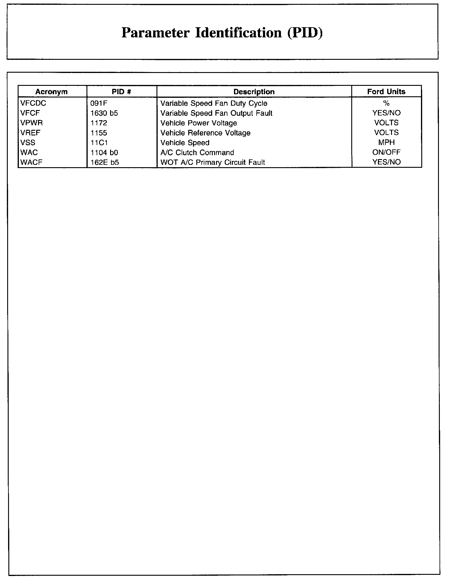Ford PID List, Part 1: