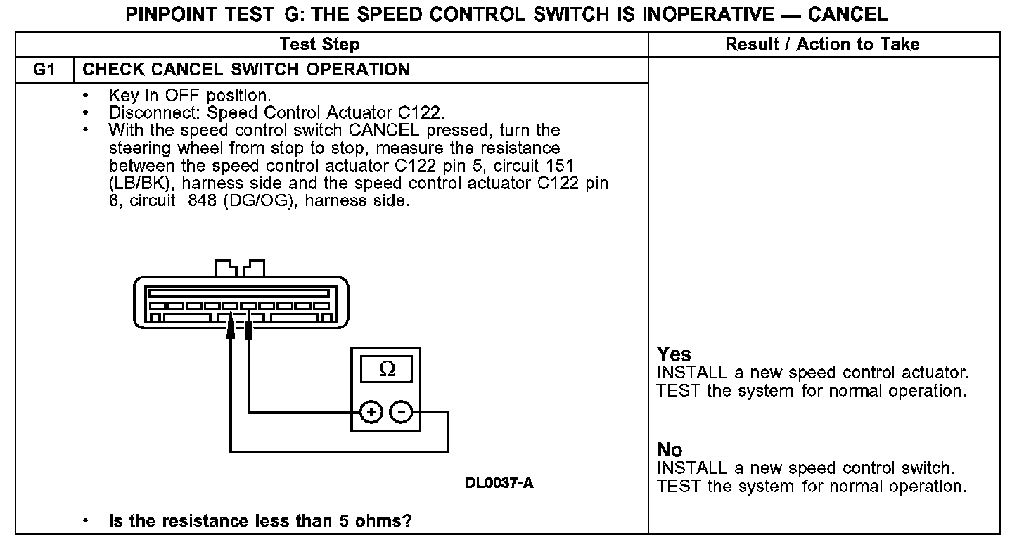 PINPOINT TEST G: THE SPEED CONTROL SWITCH IS INOPERATIVE - CANCEL