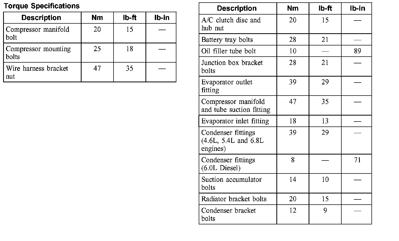 Torque Specifications: