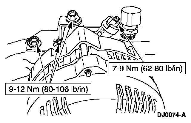 1 Remove the B+ terminal nut and disconnect the terminal.