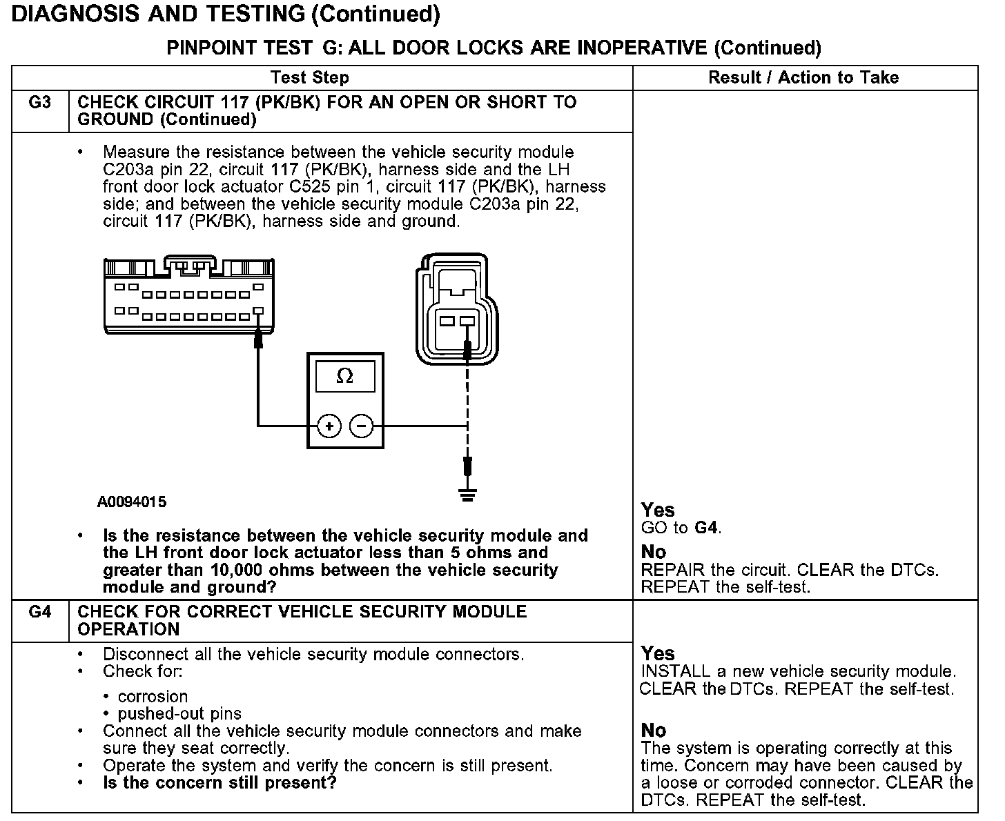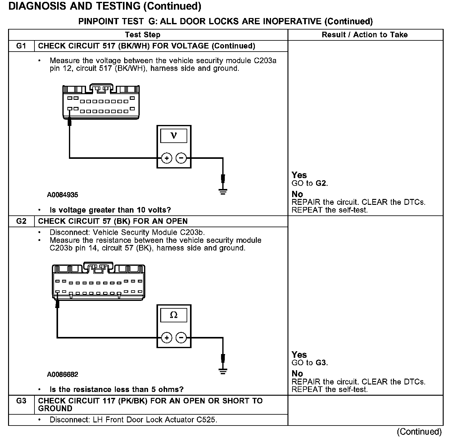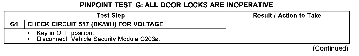 PINPOINT TEST G: ALL DOOR LOCKS ARE INOPERATIVE