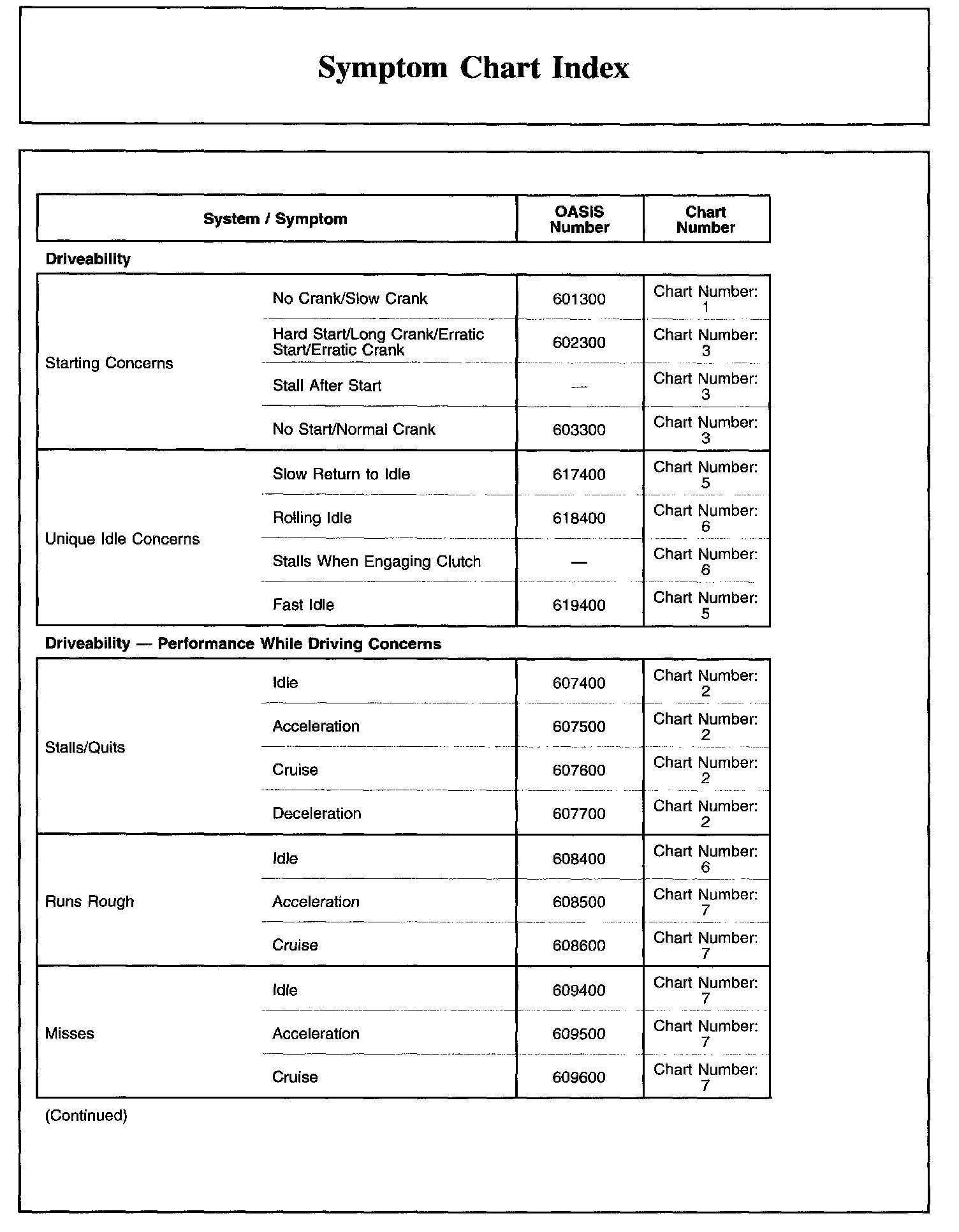 Symptom Chart Index, Part 1: