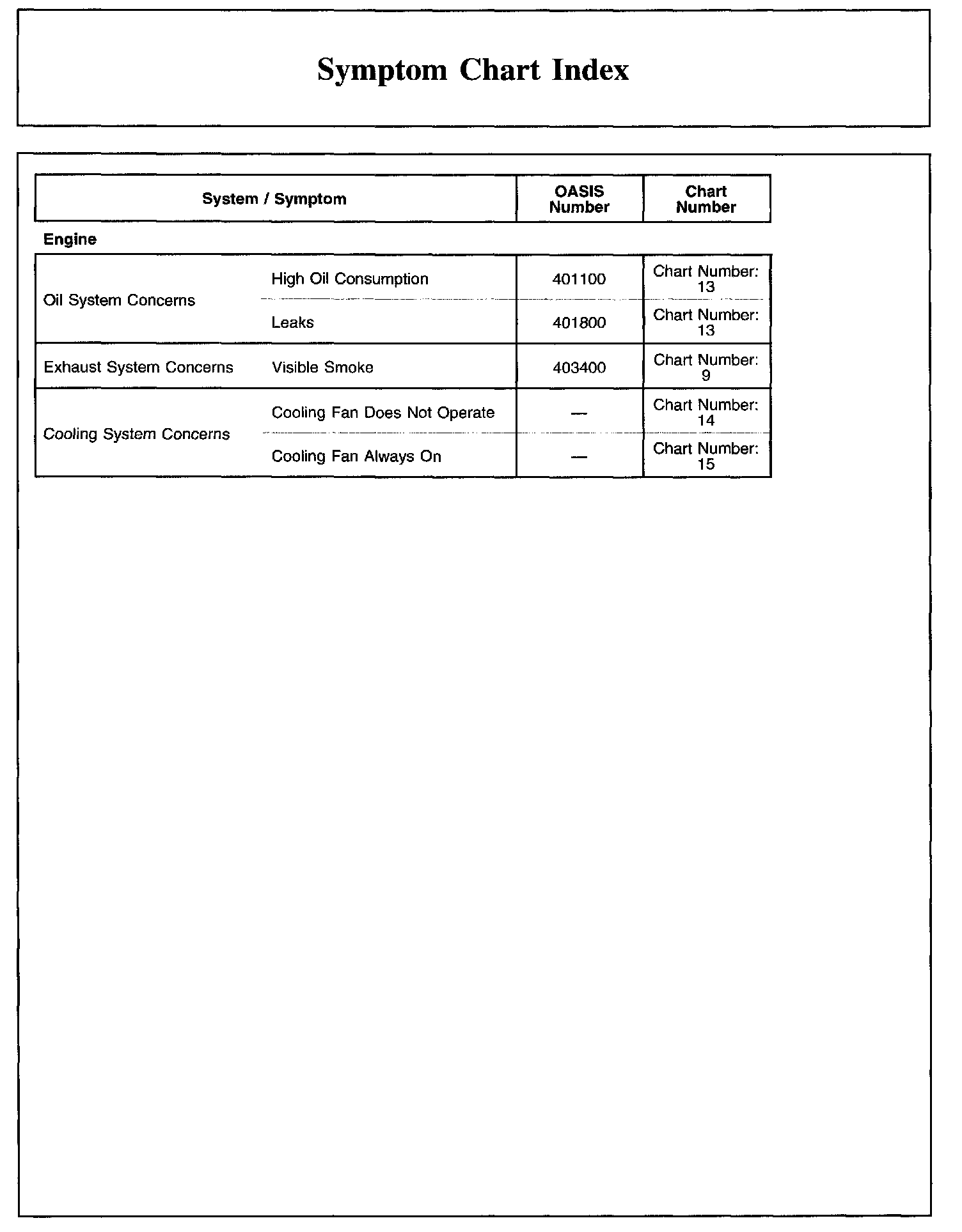 Symptom Chart Index