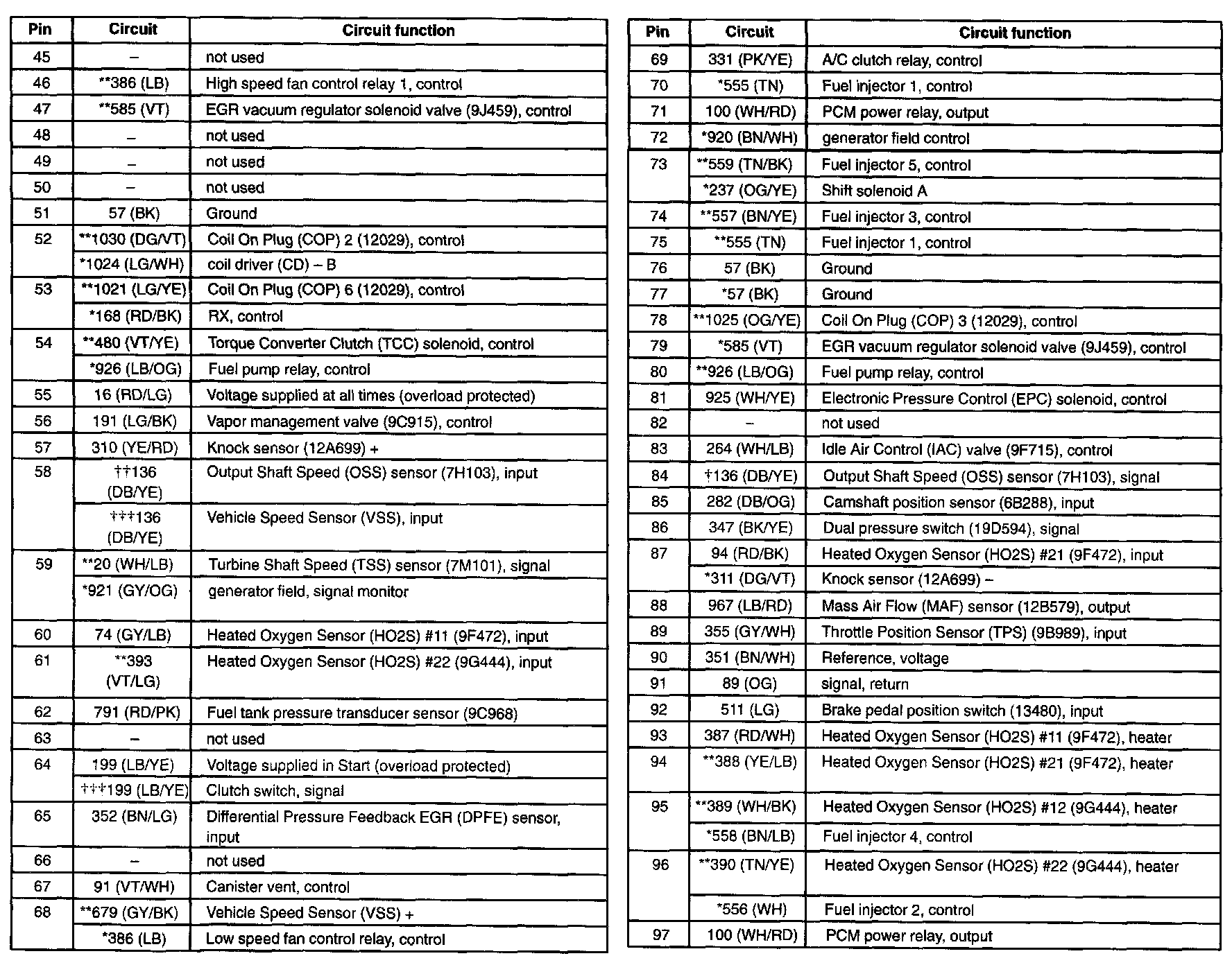 Escape 2WD V6-3.0L VIN 1