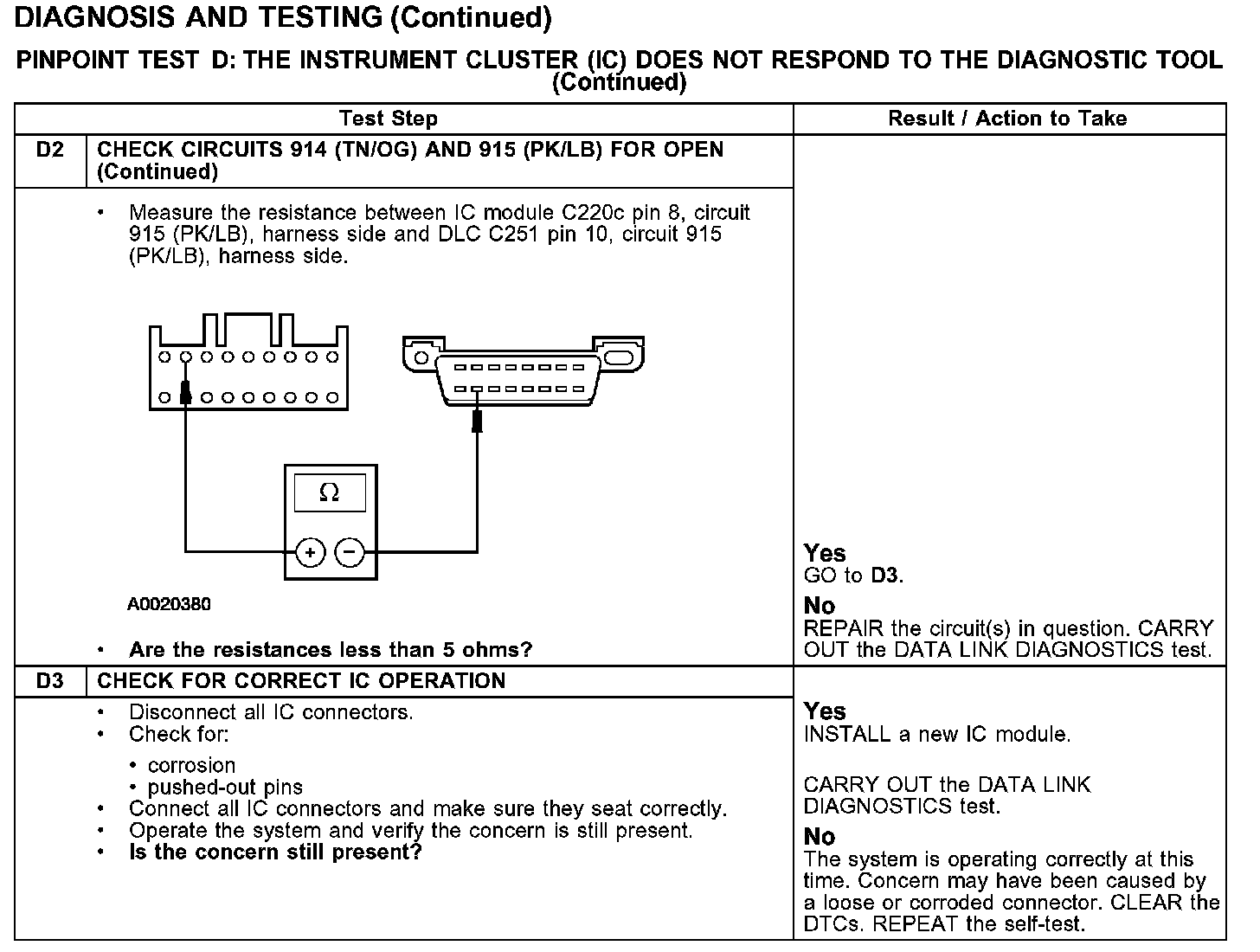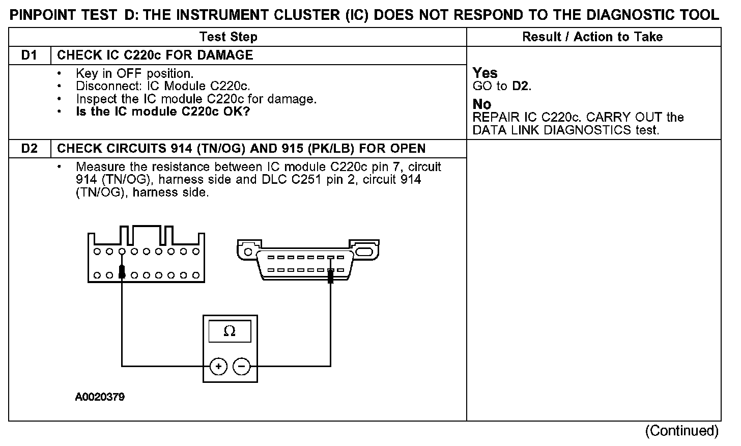 PINPOINT TEST D: THE INSTRUMENT CLUSTER (IC) DOES NOT RESPOND TO THE DIAGNOSTIC TOOL