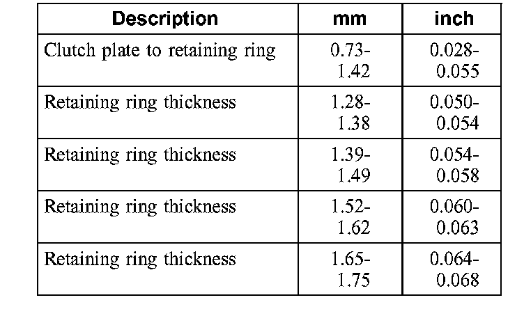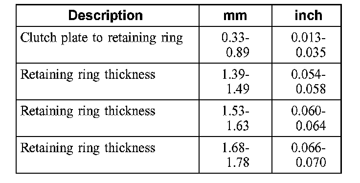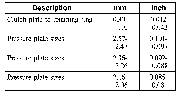 Clutch Plate Usage and Clearance Specifications