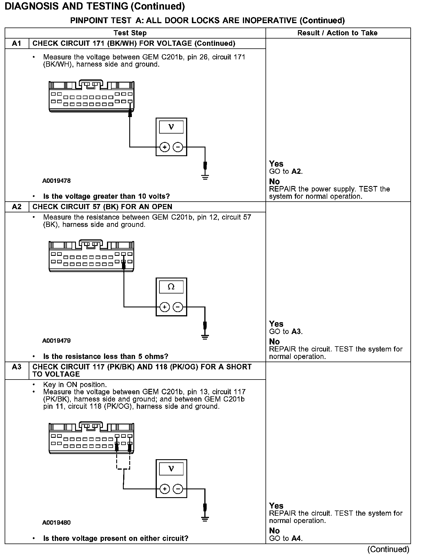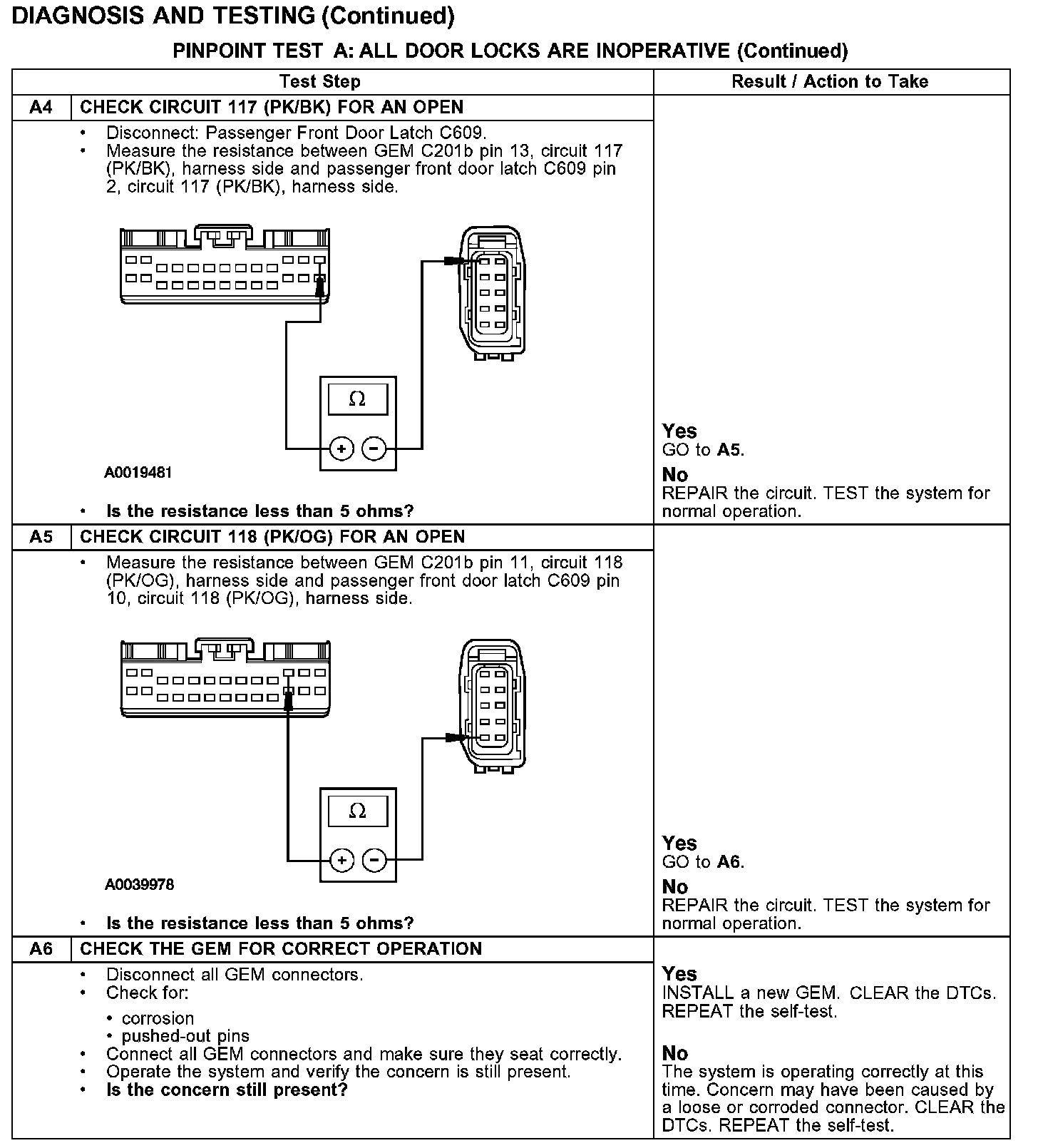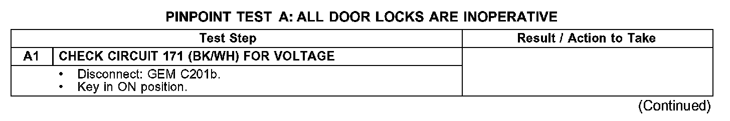 PINPOINT TEST A: ALL DOOR LOCKS ARE INOPERATIVE