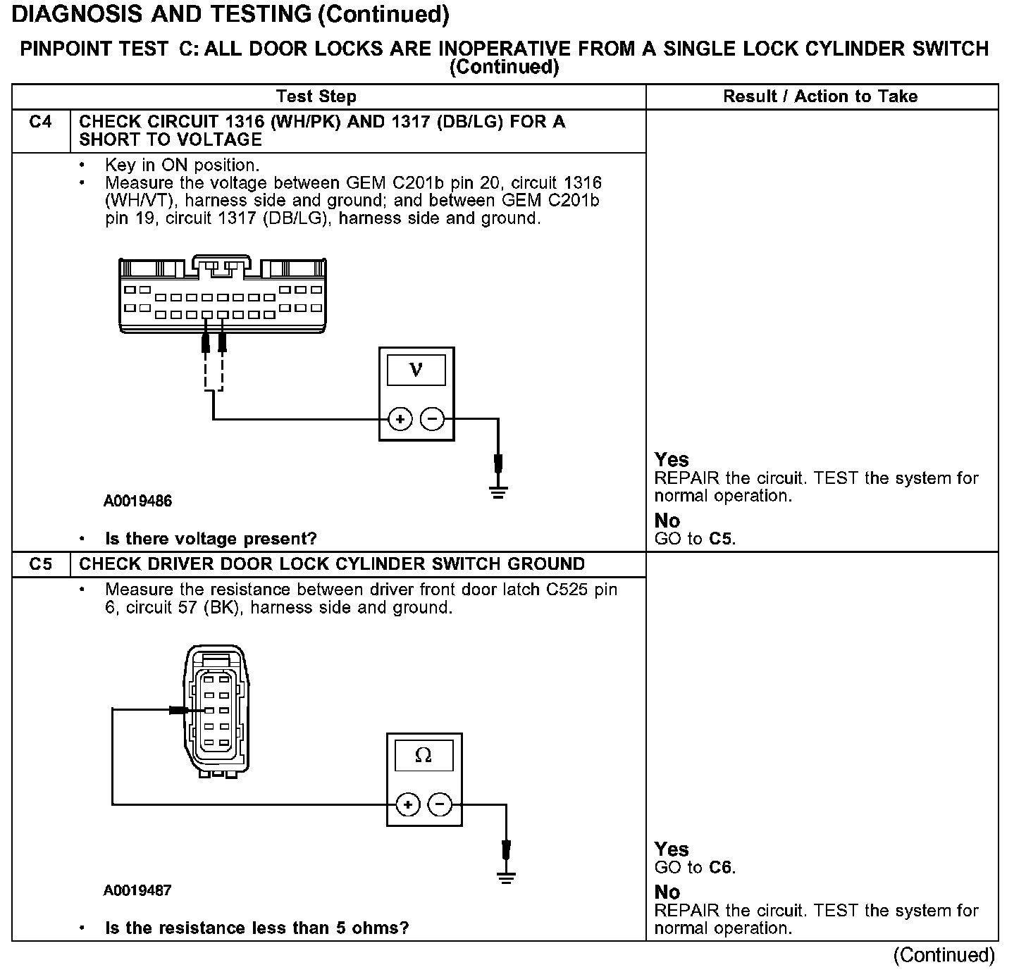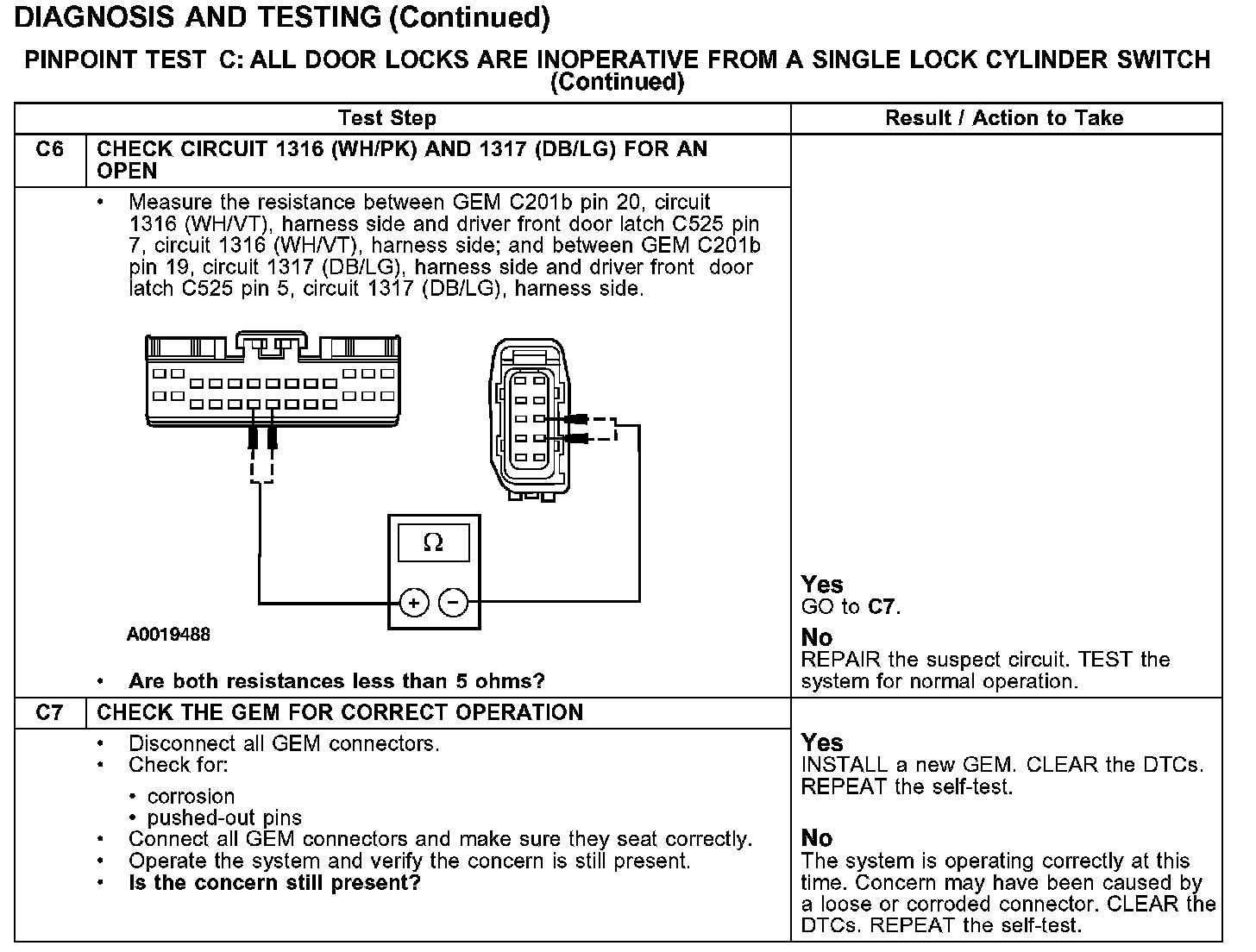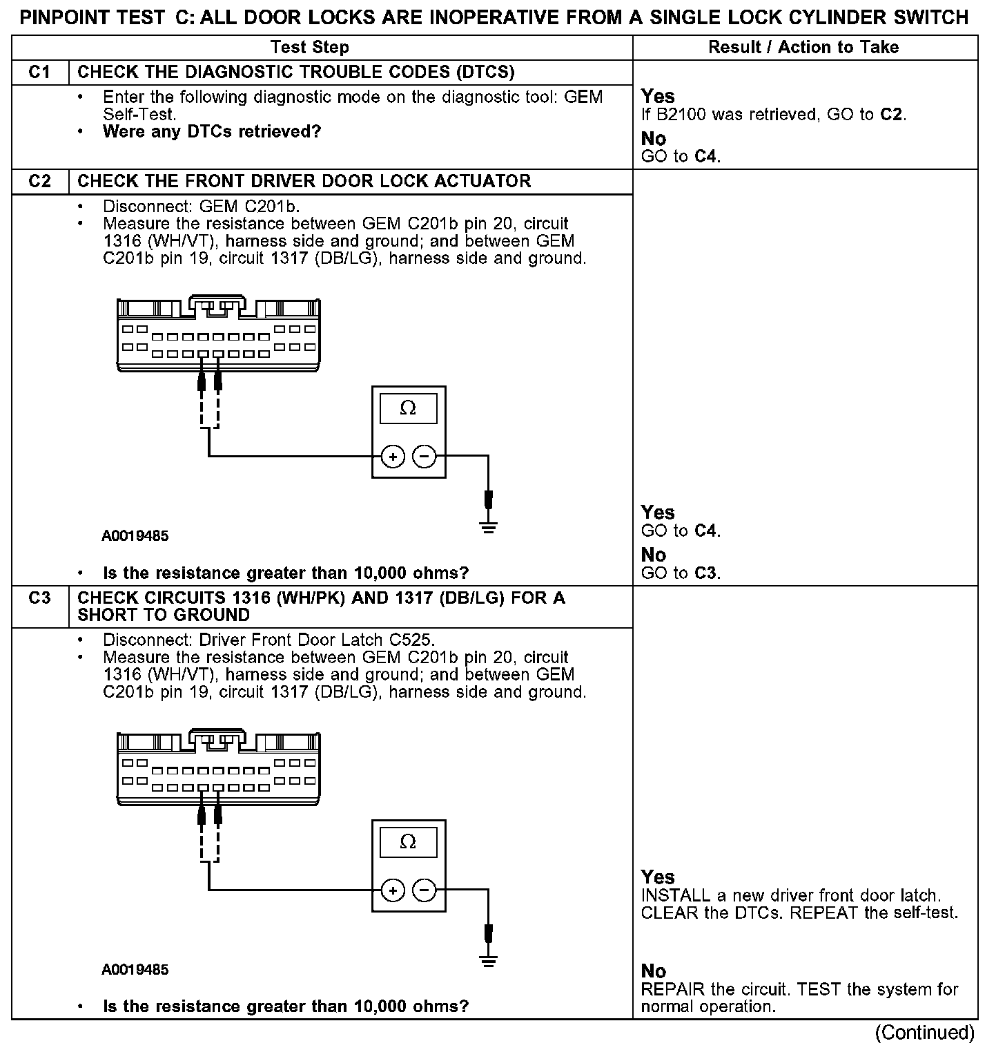 PINPOINT TEST C: ALL DOOR LOCKS ARE INOPERATIVE FROM A SINGLE LOCK CYLINDER SWITCH