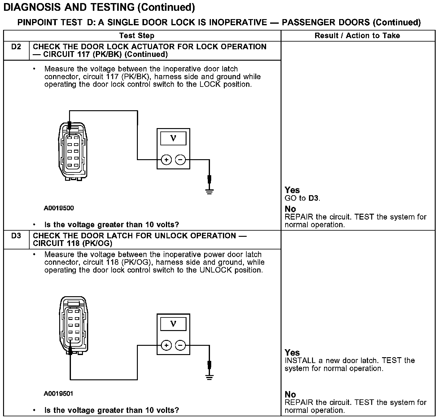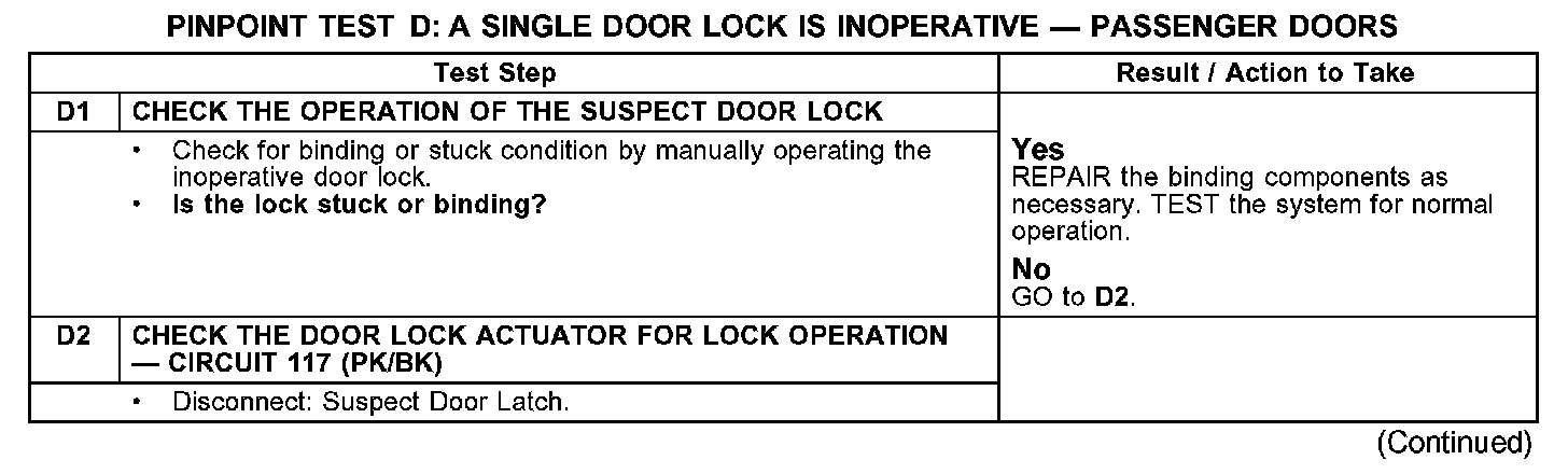 PINPOINT TEST D: A SINGLE DOOR LOCK IS INOPERATIVE - PASSENGER DOORS