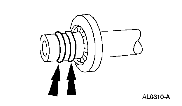 3. CAUTION: Use only new green O-ring seals. The use of any O-ring seals other than specified may result in intermittent leakage during vehicle operation.