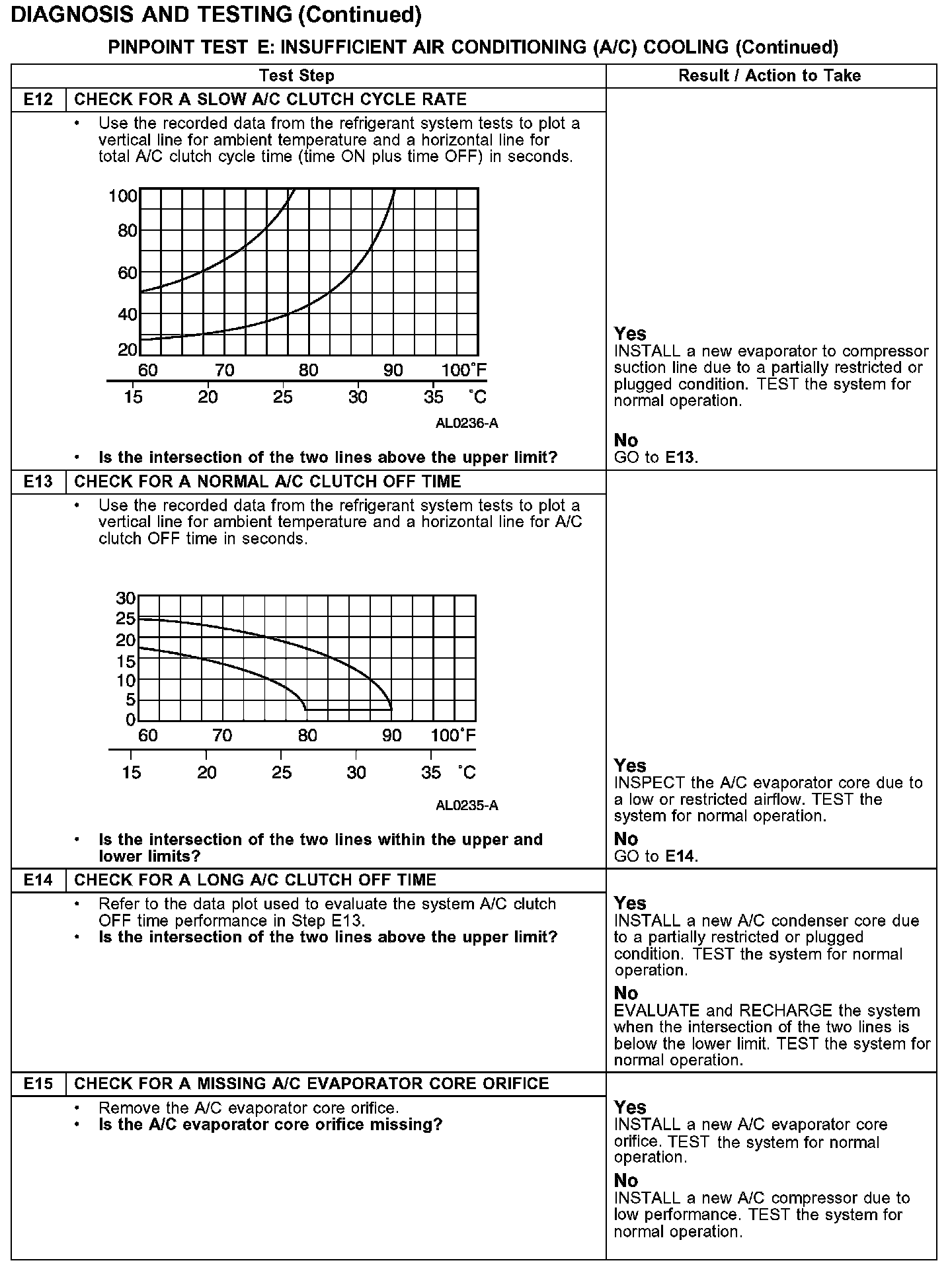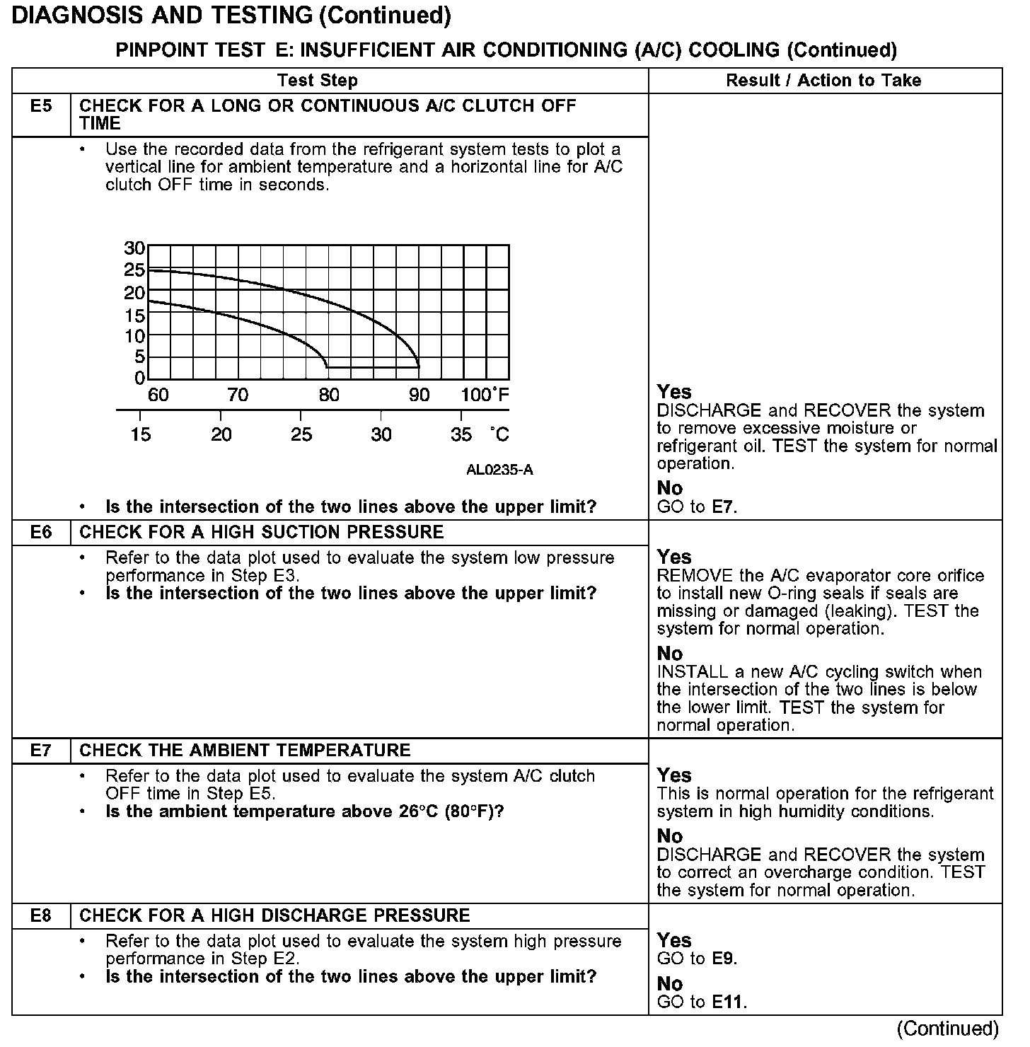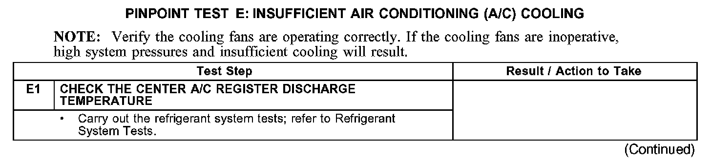 PINPOINT TEST E: INSUFFICIENT AIR CONDITIONING (A/C) COOLING