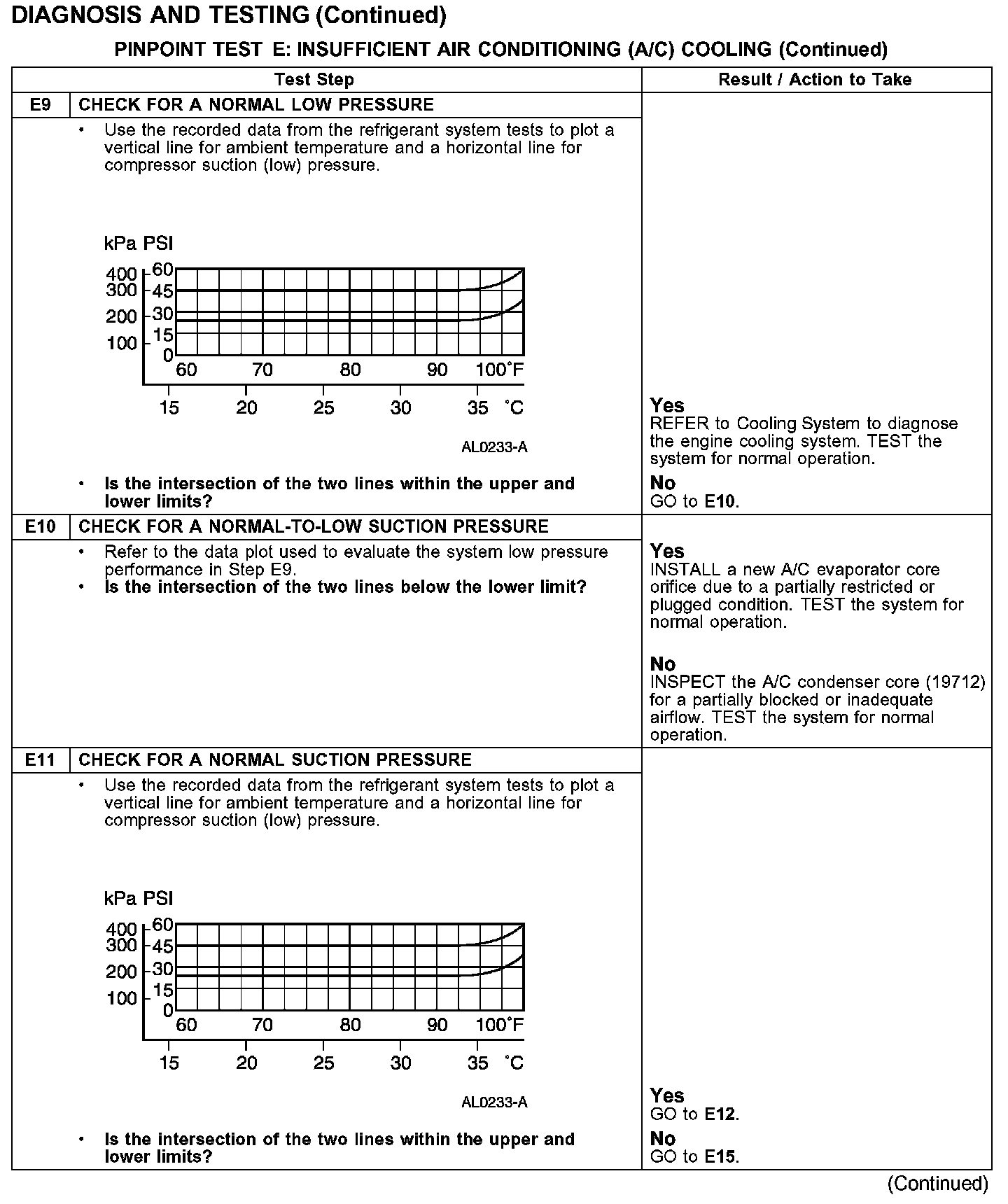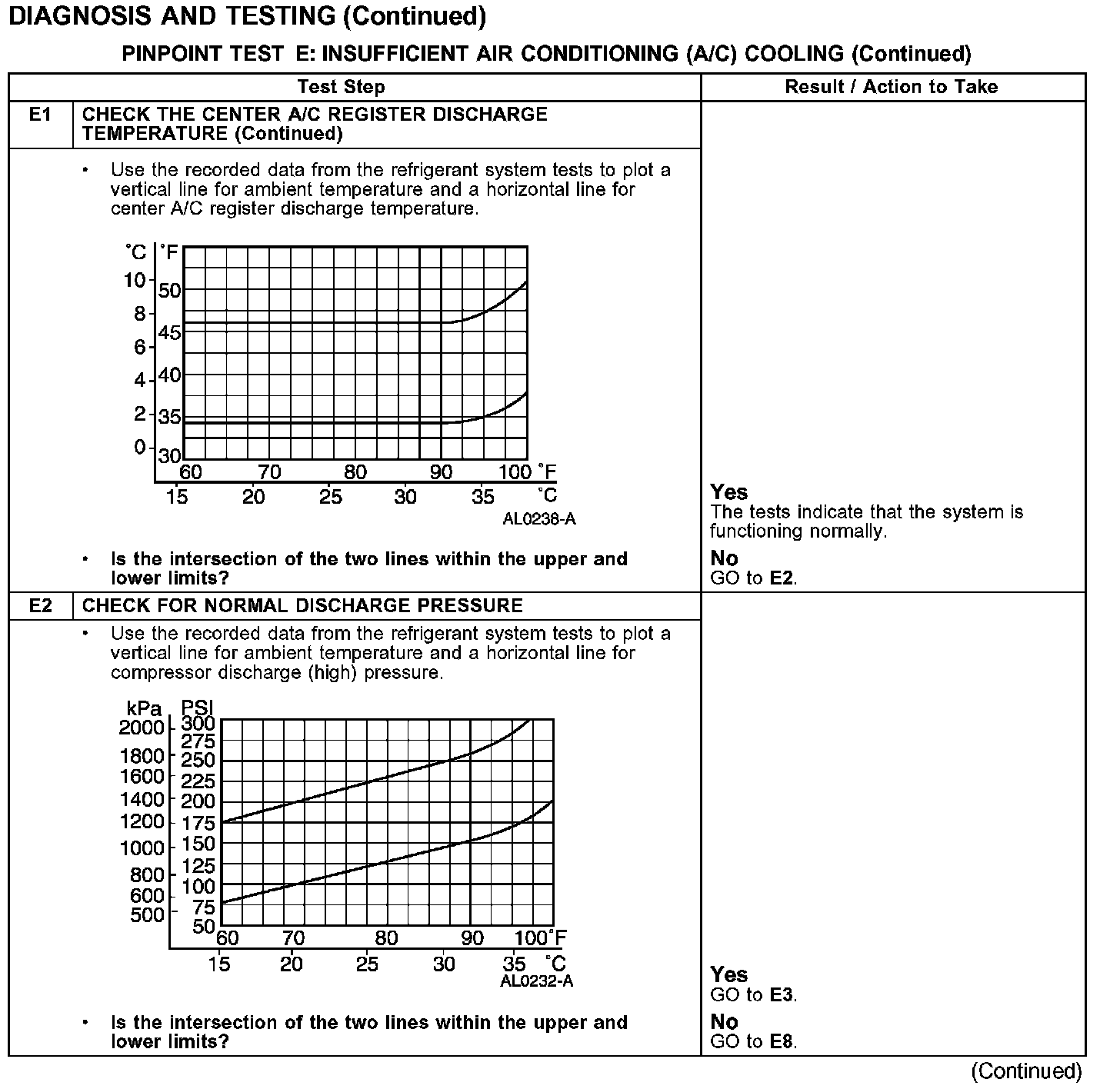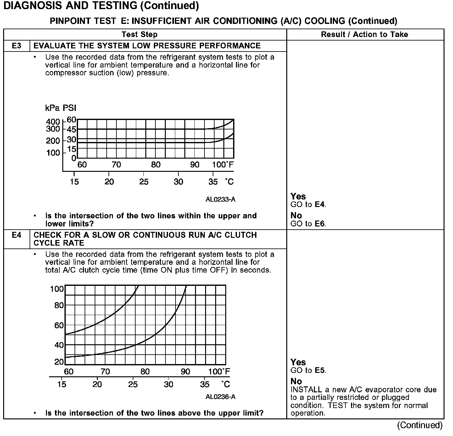 PINPOINT TEST E: INSUFFICIENT AIR CONDITIONING (A/C) COOLING