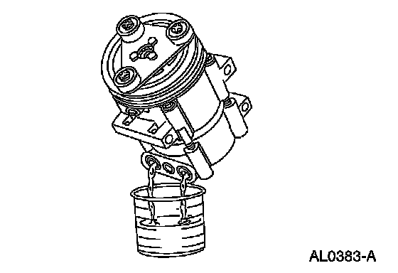 Rotate the A/C compressor shaft six to eight revolutions while collecting oil in a clean measuring device.