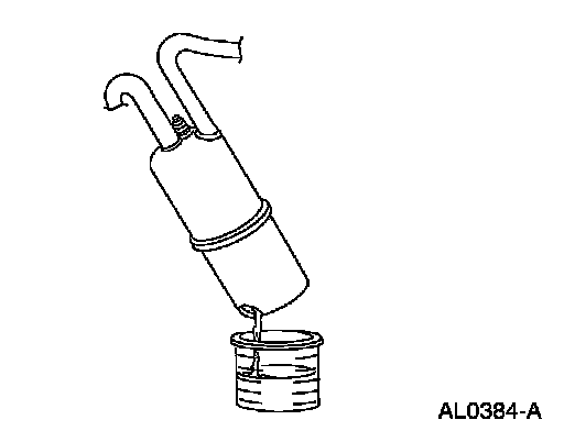 3. For the A/C evaporator core, add 89 ml (3 ounces) of clean PAG Compressor Oil YN-12-C or equivalent meeting Ford specification WSH-M1C231-B to the suction accumulator/drier inlet tube.