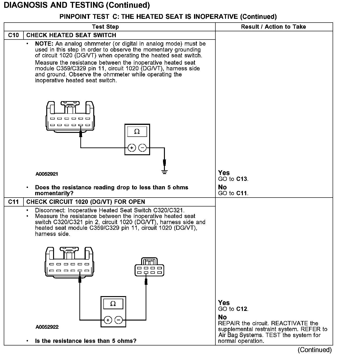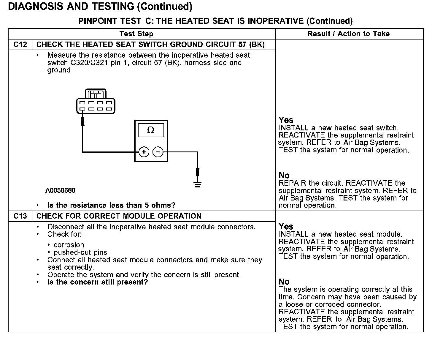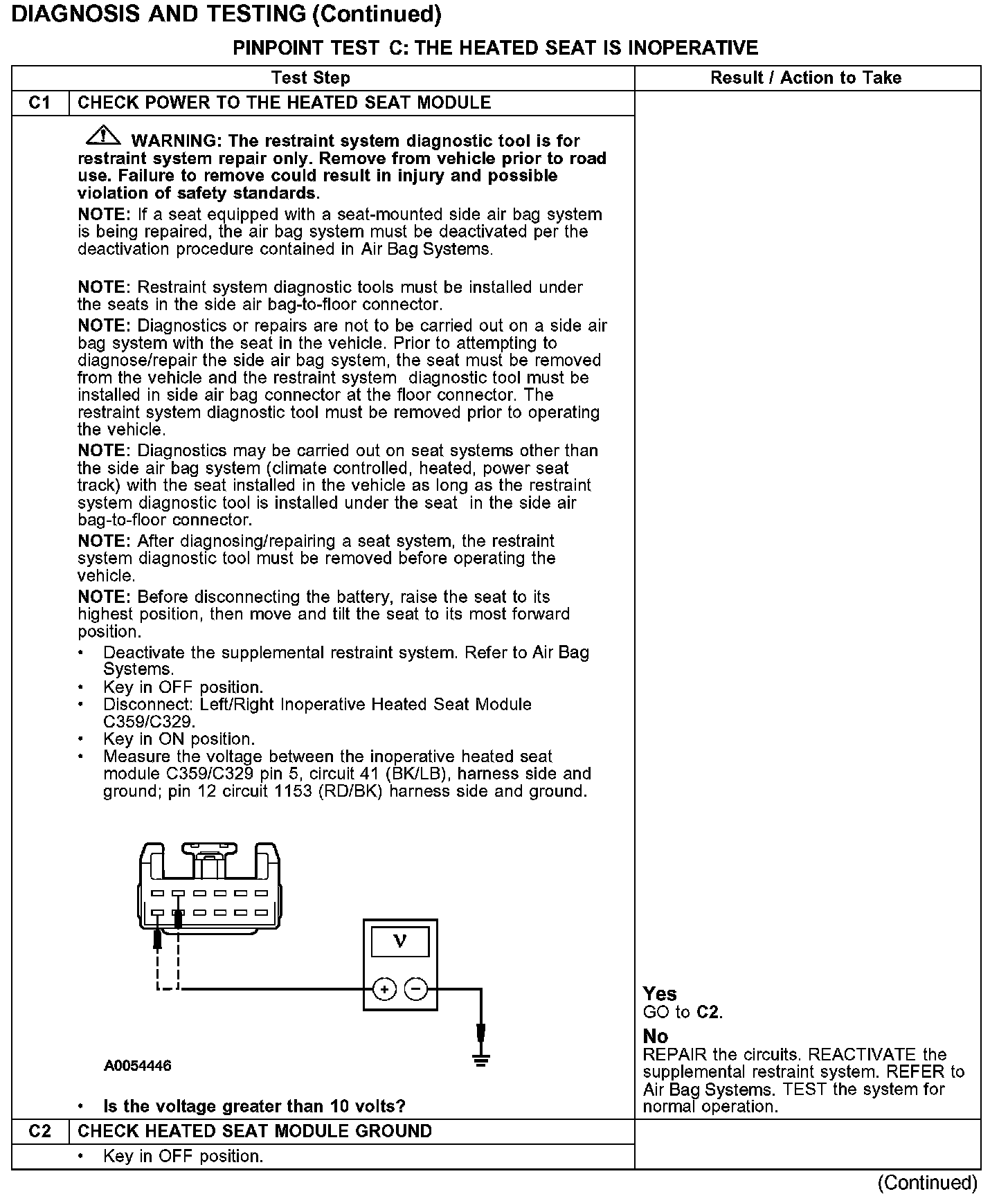 PINPOINT TEST C: THE HEATED SEAT IS INOPERATIVE