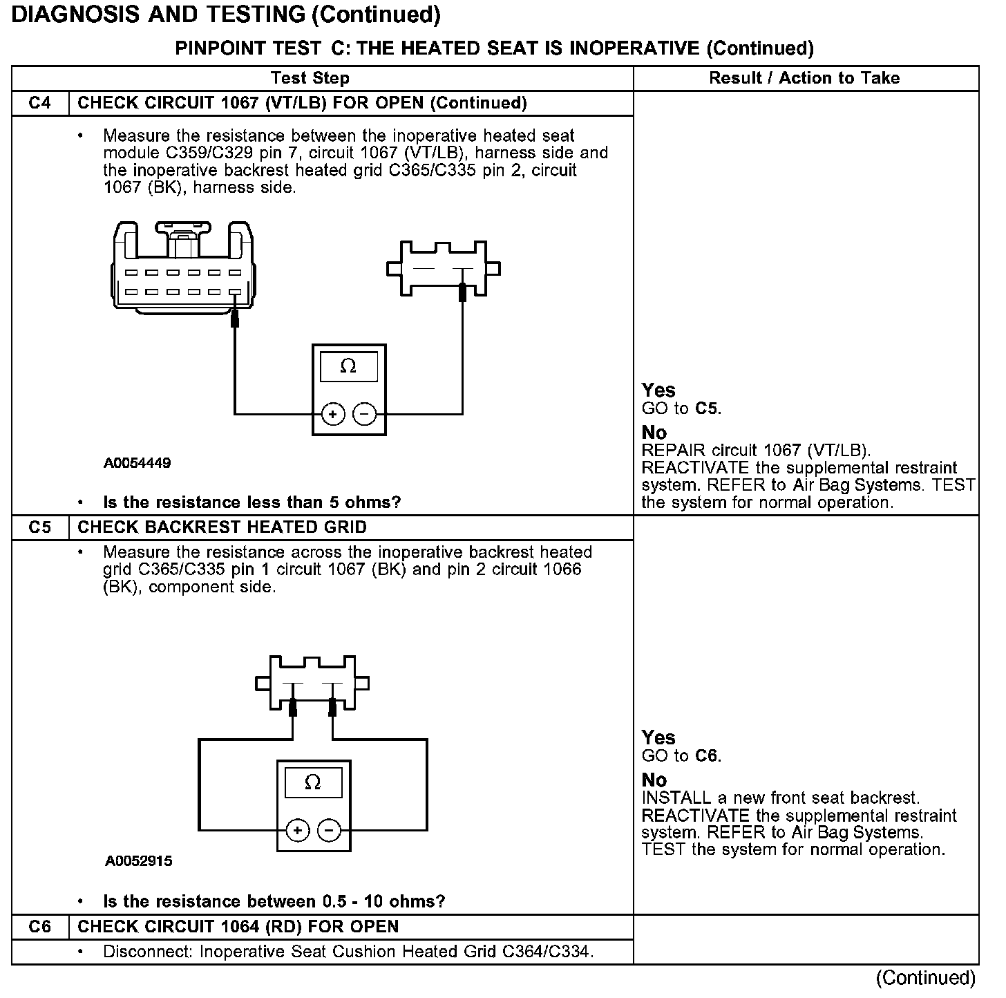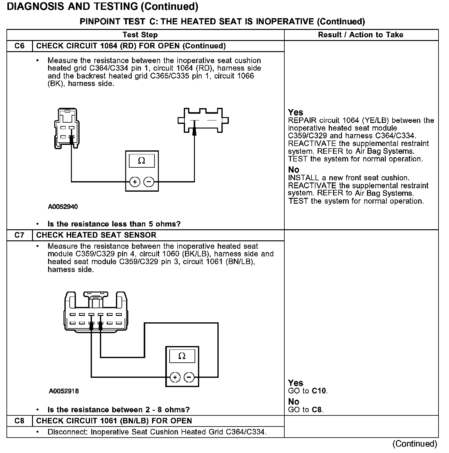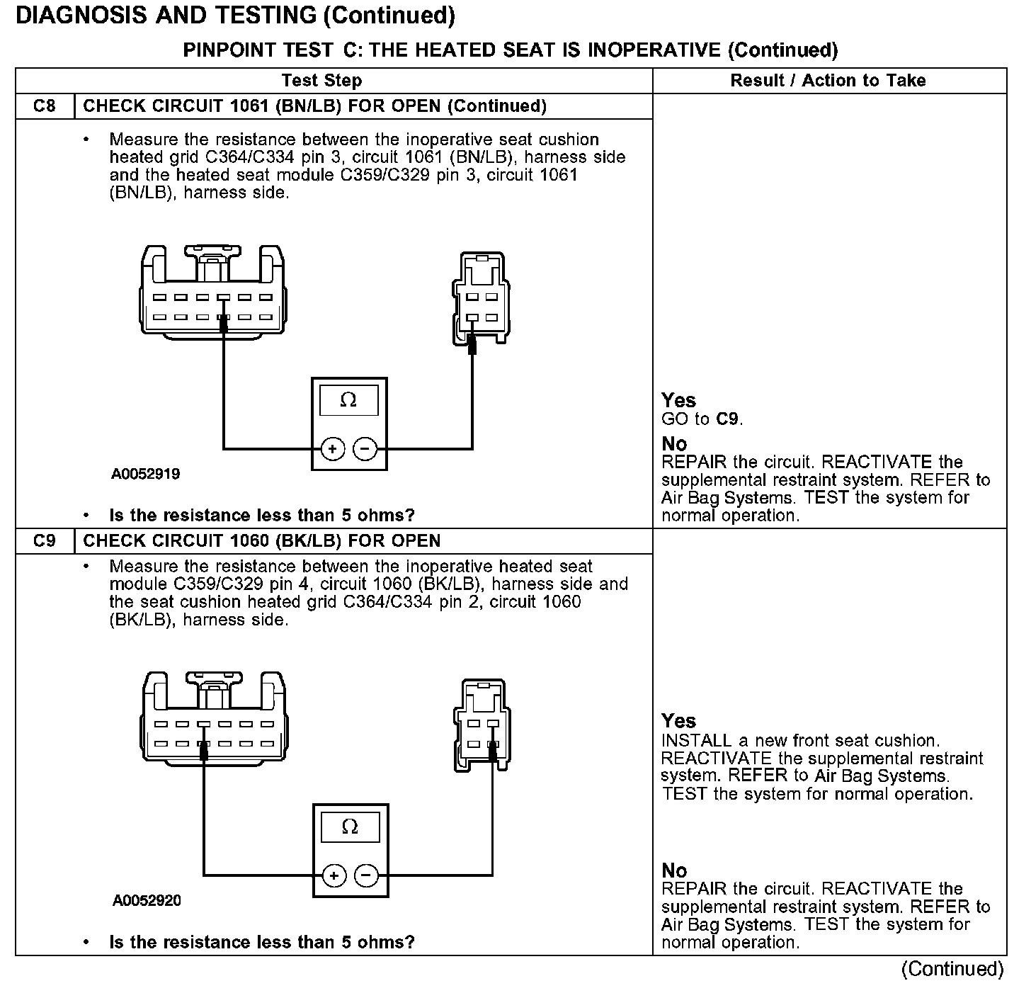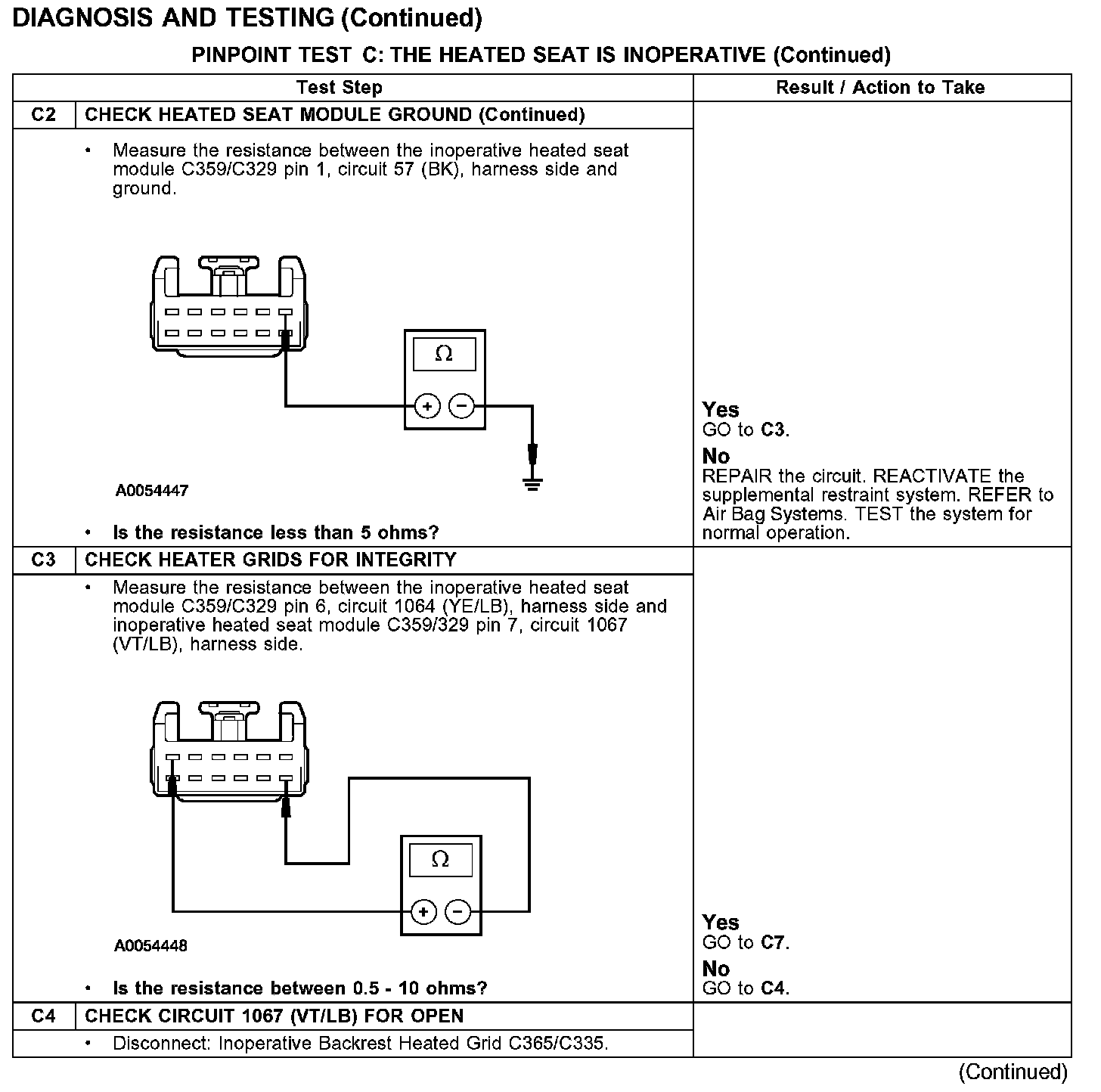 PINPOINT TEST C: THE HEATED SEAT IS INOPERATIVE