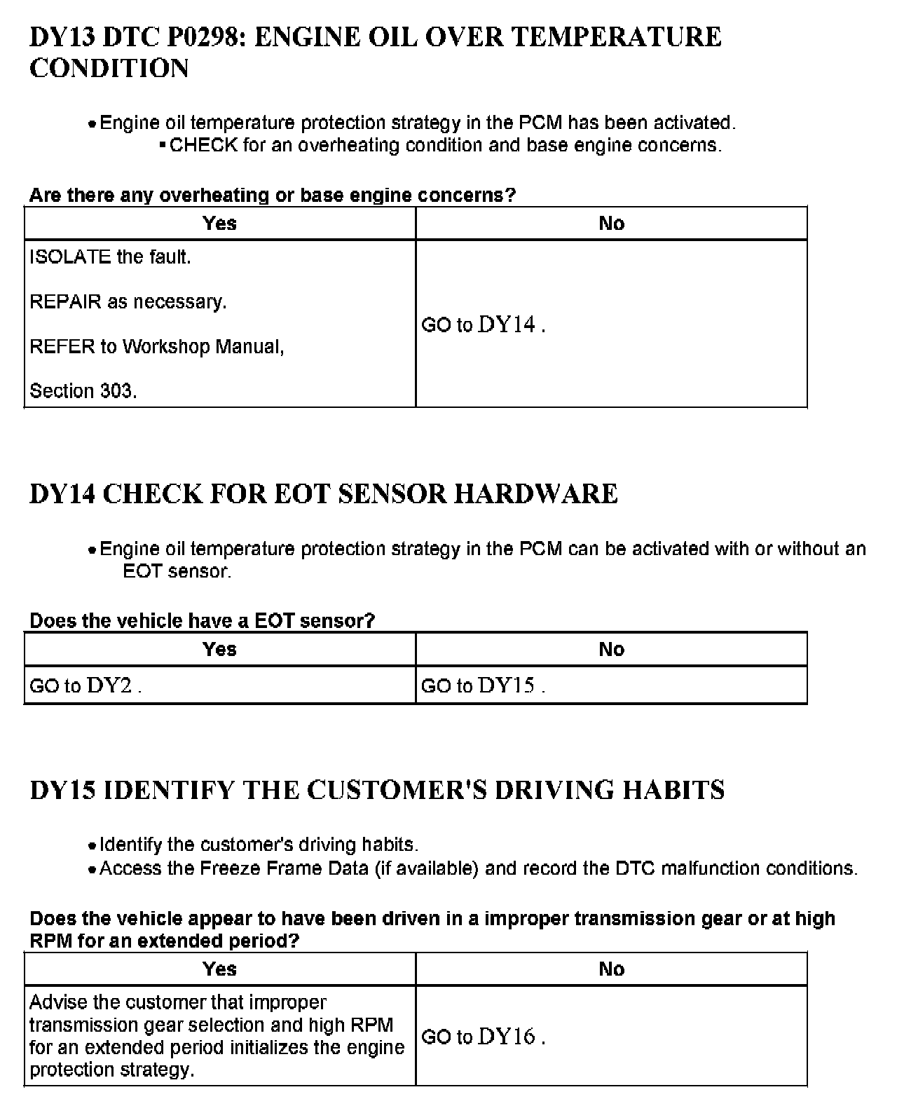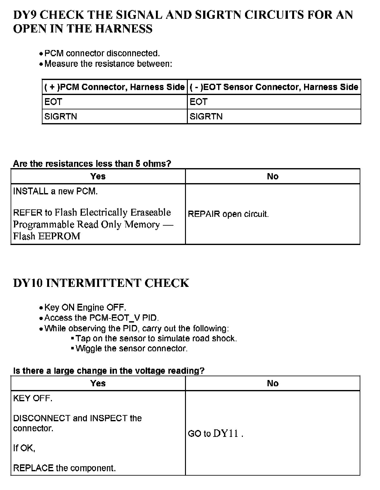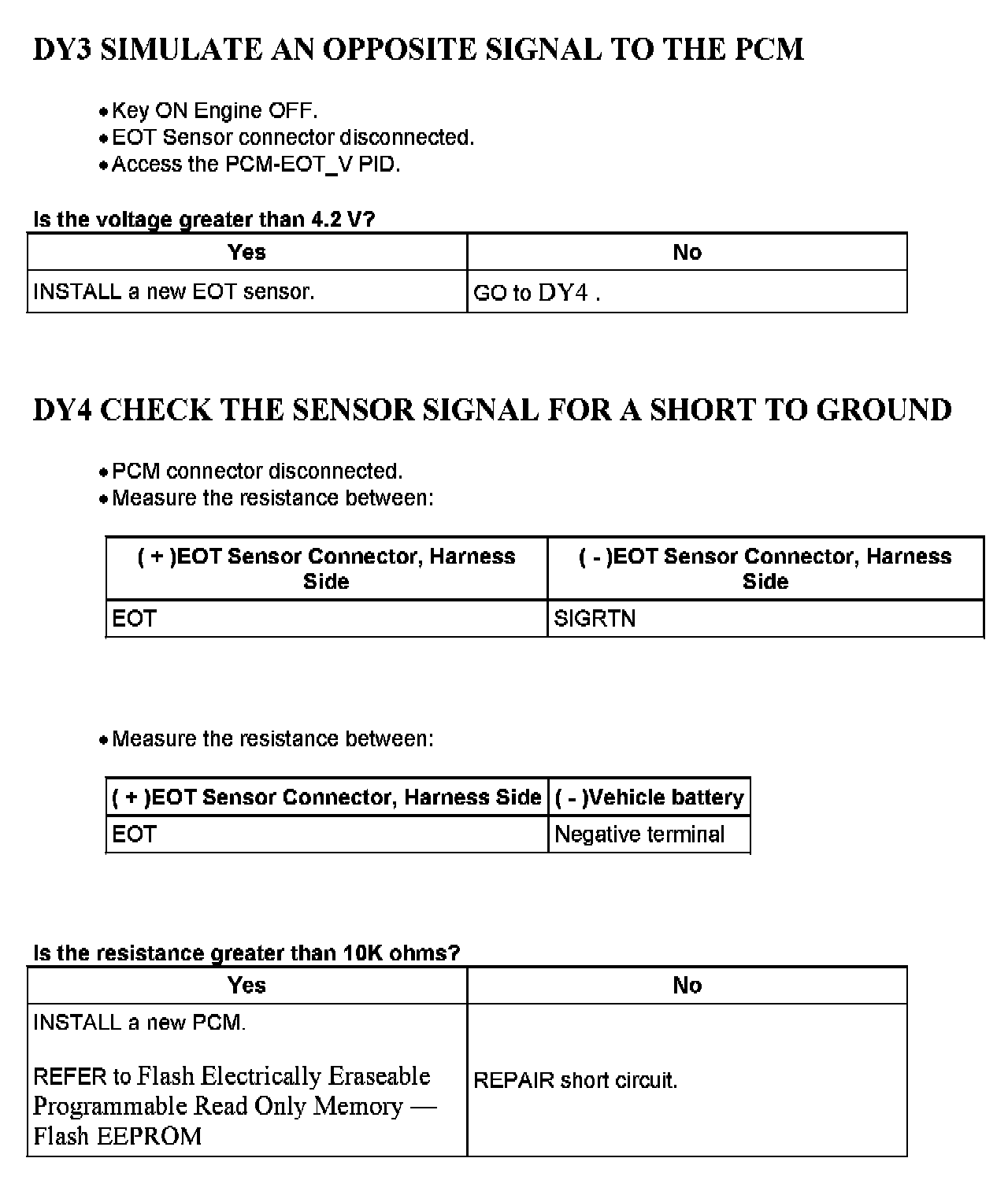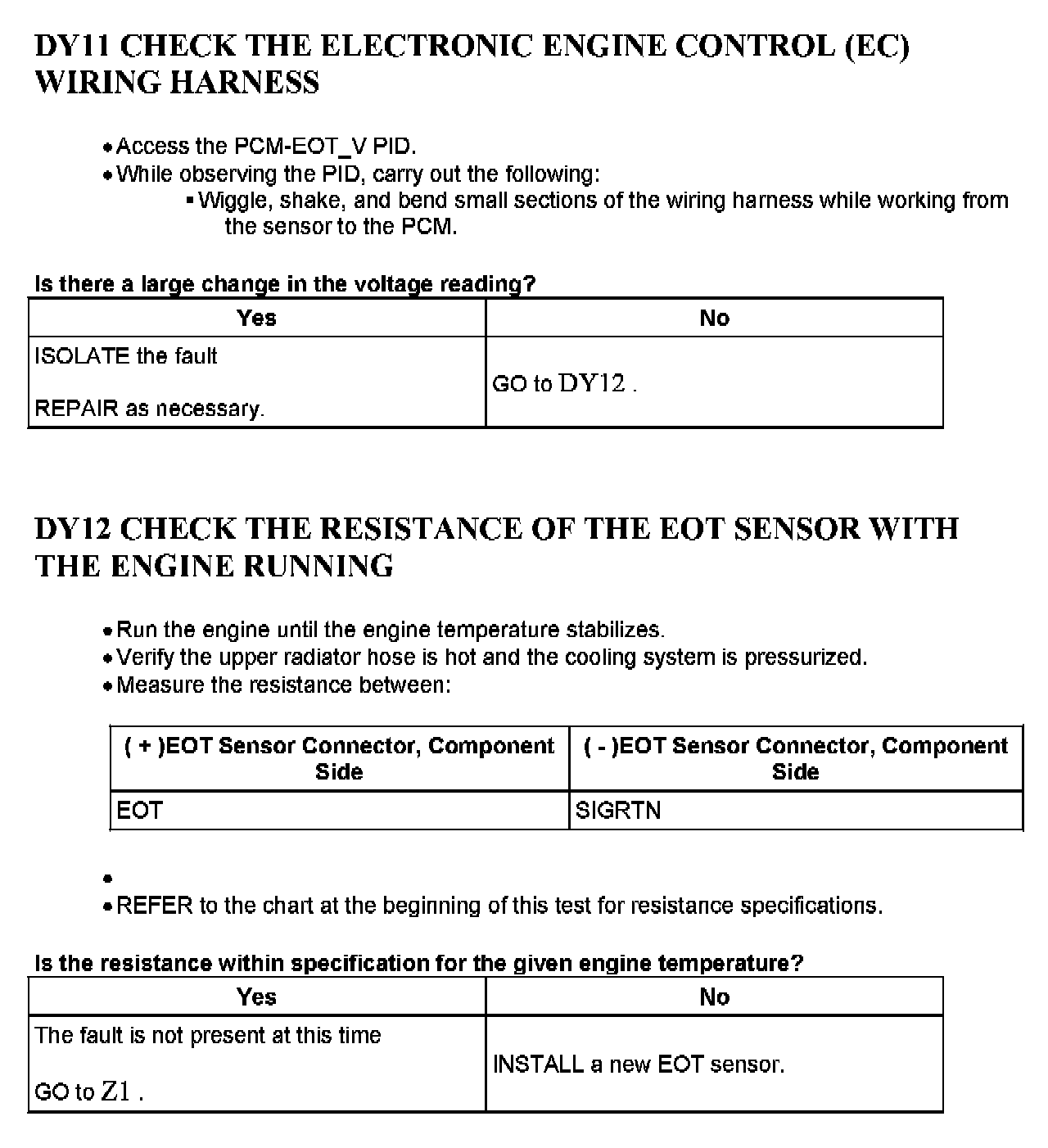 Tests DY: Engine Oil Temperature (EOT) Sensor