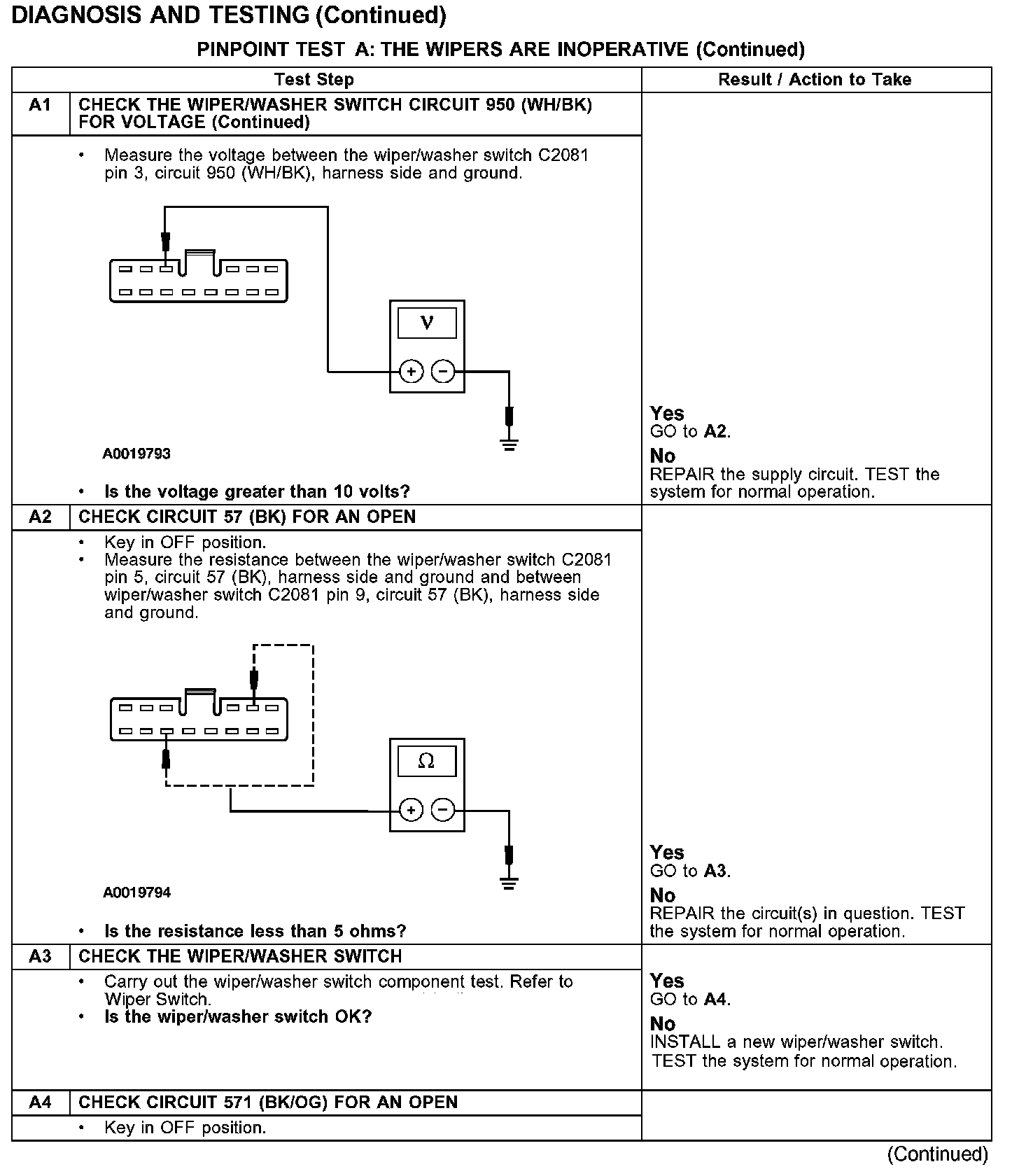 PINPOINT TEST A: THE WIPERS ARE INOPERATIVE