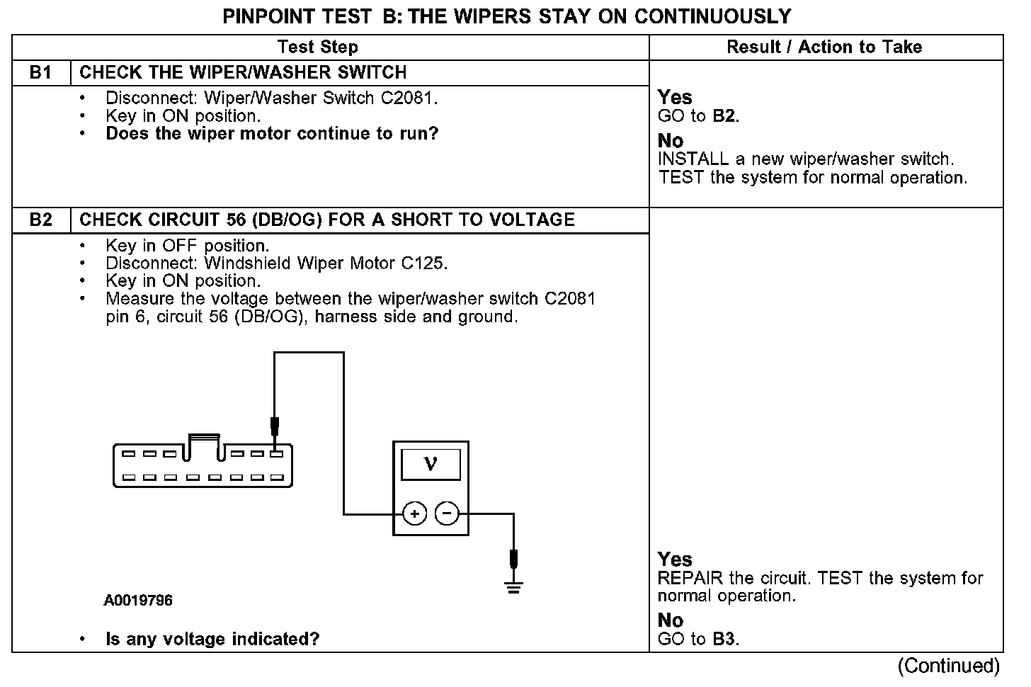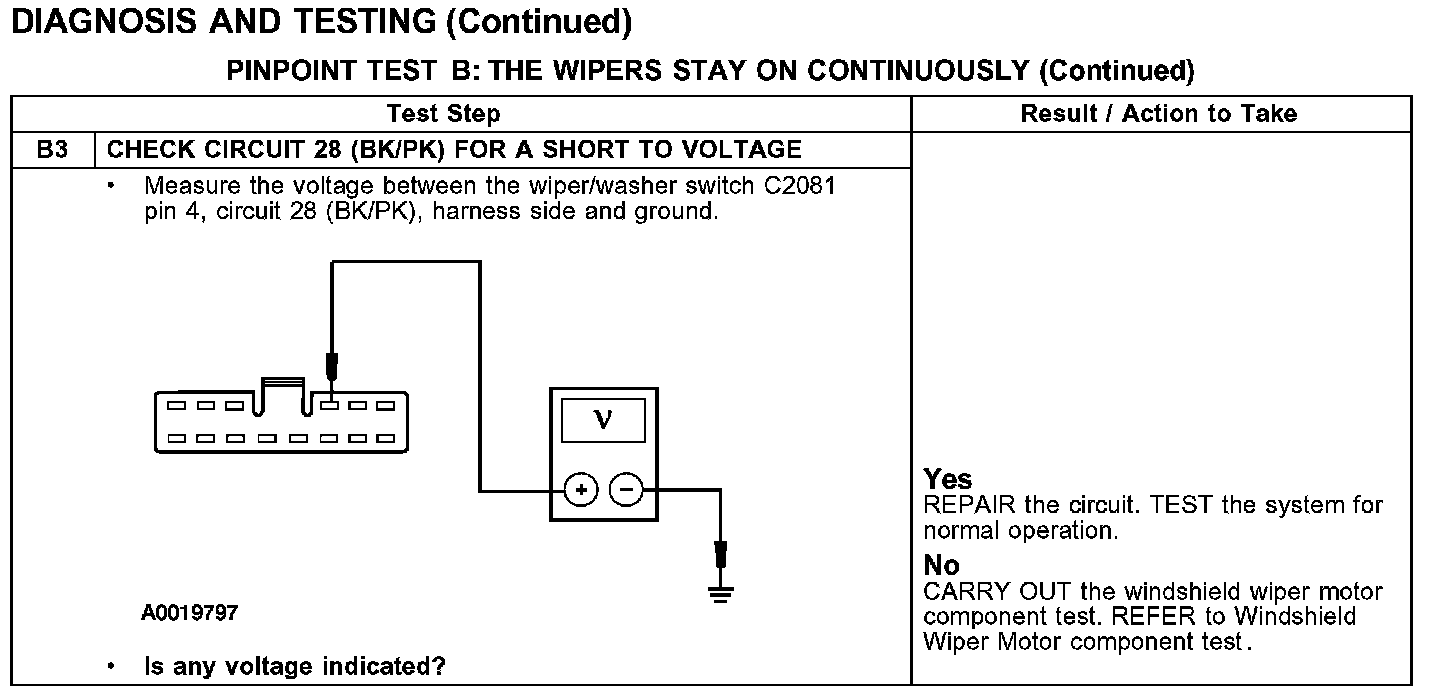 PINPOINT TEST B: THE WIPERS STAY ON CONTINUOUSLY