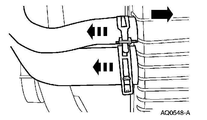 5. Remove the degas drain hose and the lower radiator hose from the radiator.