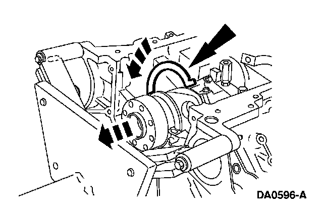 9. NOTE: To aid in assembly, apply petroleum jelly to the back of the crankshaft thrust washer.