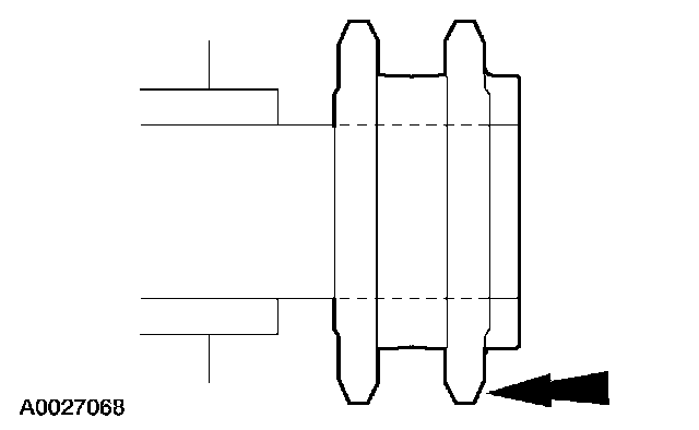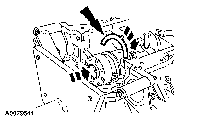 NOTE: If equipped, the oil groove on the thrust washer must face toward the front of the engine (against the crankshaft surface).
