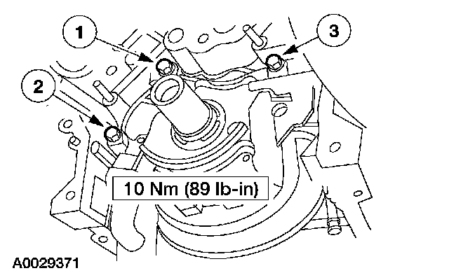 22. Position the oil pump and Install the bolts loosely. Tighten the bolts in the sequence shown.
